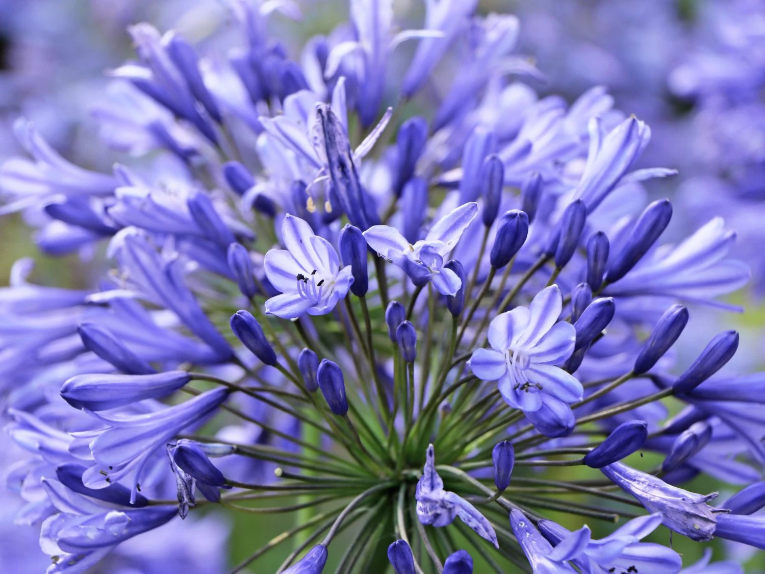 Mit ihrem wintergrünen Laub fällt diese Zierpflanze das ganze Jahr über durch attraktive Details auf. Das Hauptaugenmerk gilt bei der Afrikanischen Schmucklilie ‚Peter Pan‘ (bot. Agapanthus africanus ‚Peter Pan‘) den königsblauen, doldenförmigen Blüten. Durch die lange Blütezeit und den zarten Duft ist sie eine der beliebtesten Schmucklilienarten. Mit ihrem aufrechten und schlanken Wuchs eignet sich die Staude optimal als Hintergrundbepflanzung oder für eine Solitärstellung. Ein wahrhaft farbenfrohes Blütenmeer lässt sich durch eine Kombination mit anderen Schmucklilienarten gestalten. Neben einem Standort im Garten fühlt sich Agapanthus africanus ‚Peter Pan‘ im Blumenkübel wohl und findet so auf der Terrasse ihren Platz.