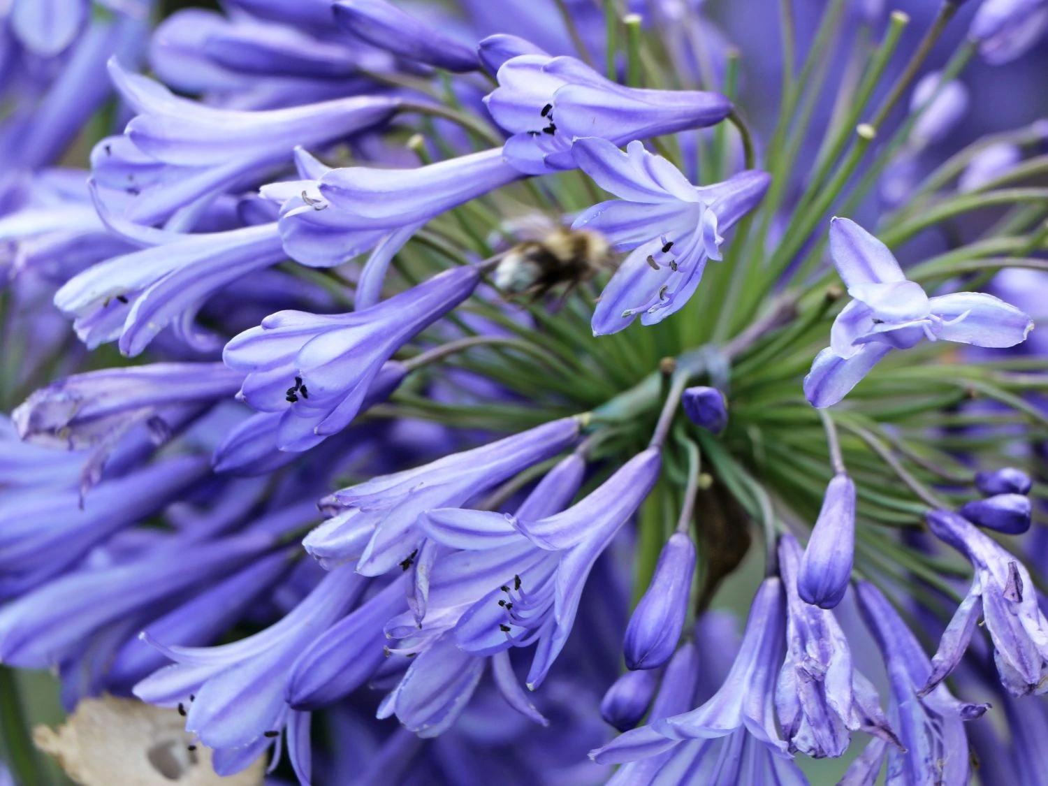 Eine Düngung ist mindestens einmal pro Jahr, bevorzugt mehrmals während der Blütephase, empfehlenswert. Bei einem humosen und nährstoffreichen Boden neigt die Afrikanische Schmucklilie ‚Peter Pan‘ selbst ohne regelmäßige Düngung zu einer reichhaltigen Blüte. Anmutig sowie farbenprächtig bezaubert die Afrikanische Schmucklilie im Garten und erregt die Aufmerksamkeit. In der Blütezeit verströmt sie einen leichten Duft. Sie ist eine wintergrüne Pflanze und benötigt in der kalten Jahreszeit einen Winterschutz. Zudem ist ein windgeschützter Standort zu wählen um die langen Stängel vor dem Abbrechen zu bewahren. Geeignet ist beispielsweise eine Pflanzung in der Nähe einer Hauswand. Dort bekommt Agapanthus africanus ‚Peter Pan‘ viel Sonnenlicht, keine nassen Füße und ist vor Wind und Witterung geschützt.