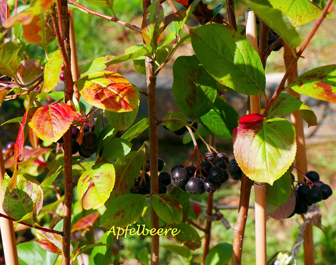 Aroniabeeren haben ihren Ursprung in Nordamerika. Die finnische Züchtung ‚Viking‘ stammt aus der wilden Aronia. Sie ist seit den 1970er Jahren bedeutungsvoll und mehr als ein Geheimtipp. Unter dem Namen Apfelbeere ‚Viking‘ hat sich die Pflanze als Zier- und Nutzgehölz einen festen Platz in heimischen Gärten erobert. Es bedarf keiner speziellen Böden, um die robuste und anpassungsfähige (bot.) Aronia melanocarpa ‚Viking‘ anzubauen. Der ideale Zeitpunkt zur Pflanzung, als einzeln stehender Strauch oder als Hecke, ist vom Frühjahr bis zum Spätherbst. Schon im zweiten Standjahr stellen sich erste Erträge ein. Ein winterlicher Auslichtungsschnitt des Strauches, ist alle drei bis vier Jahre zu empfehlen. Die winterlichen Frostperioden in mitteleuropäischen Gefilden überstehen die Pflanzen in den meisten Fällen ohne Schwierigkeiten. Auch aus diesem Grund punktet die Apfelbeere ‚Viking‘ mit einer einfachen gärtnerischen Handhabung. Eine Aroniapflanze bringt bis zu 25 Jahre regelmäßig gute Ernten. Im Mai, zur Blütezeit, zeigen die Aroniasträucher ihre weißen, kleinen Blüten in Doldenform, die der Weißdornblüte ähneln. Im Sommer reifen kugelige kleine Beeren an den Dolden heran. Zur Erntezeit, ab Ende August bis in den Oktober hinein, erfreuen Aroniabeeren mit ihrer intensiven schwarz-violetten Färbung das Auge. Neben der herbstlichen Beerenpracht geht das Laubkleid vom satten Sommergrün in herrlich leuchtendes Rot über. Mit diesem Farbenspiel lässt sich der berühmte Indian Summer vor der eigenen Haustür erleben.
