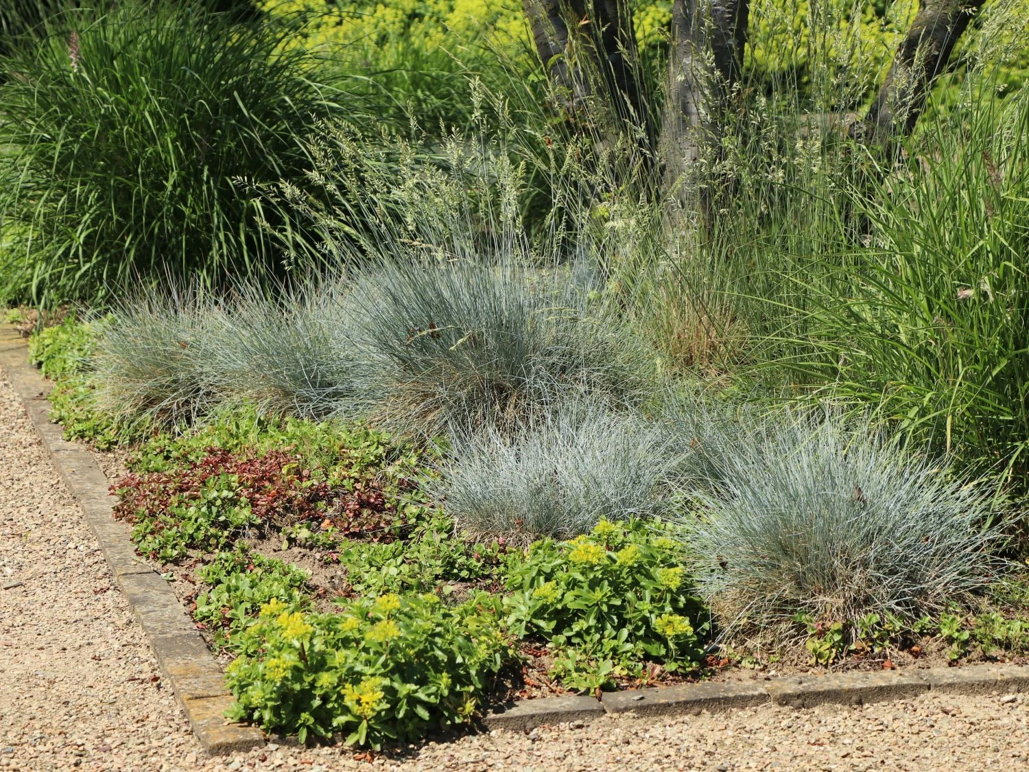 In der Sonne leuchten die blauen Blätter noch intensiver und ziehen die Aufmerksamkeit auf sich. Das Erscheinungsbild des Blau-Schwingels ‚Elijah Blue‘ ist atemberaubend. Dieses wunderschöne Ziergras bietet noch viel mehr, als leuchtende Farben im Sonnenschein. Der (bot.) Festuca cinerea ‚Elijah Blue‘ ist vielseitig und an verschiedenen Standorten einsetzbar. Ob im Beet, auf der Freiflächen oder in Steinlagen, diese schöne Staude lässt sich auf unterschiedliche Weise anpflanzen. Besonders gerne wächst das in den USA gezüchtete Gras in Steinlagen. Dort sticht es mit seinem dichten, horstbildenden und polsterartigen Wuchs hervor. Besonders diese, farblich eher ruhig gestalteten Bereiche, wartet das sehenswerte Ziergras mit seinem prächtigen und intensiven Farbenspiel auf.