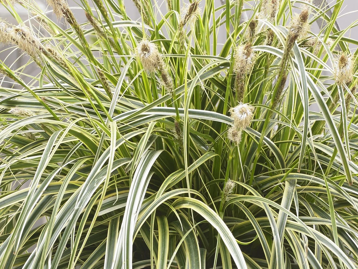 Die Buntblättrige Segge ‚Feather Falls‘ begeistert mit ihrem wunderschönen zweifarbigen Laub und der eleganten Wuchsform. Ihre Blätter sind schmal und lineal geformt. Sie sind vorn zugespitzt und besitzen einen glatten Rand. In der Mitte zeigen sie ein kräftiges Dunkelgrün, während die Blattränder in sanftem Cremeweiß schimmern. Mit seinem kontrastreichen Farbenspiel erfreut das wintergrüne Laub das Auge auch in der kalten Jahreszeit. Im Frühjahr, von März bis Mai, entzückt (bot.) Carex x cultorum ‚Feather Falls‘ zusätzlich mit grazilen Blütenständen. Die braunen Blüten sind ährenförmig. Sie entwickeln sich zu ährenförmigen Samenständen, die ebenfalls hübsch anzuschauen sind. Charakteristisch für die Buntblättrige Segge ‚Feather Falls‘ ist der bezaubernde, bogig überhängende Wuchs ihrer Blätter. Sie wächst horstbildend und üppig, ihre Blütenstängel wachsen aufrecht. Sie erreicht eine Höhe von 20 bis maximal 40 Zentimeter, die Breite liegt zwischen 30 und 50 Zentimeter.