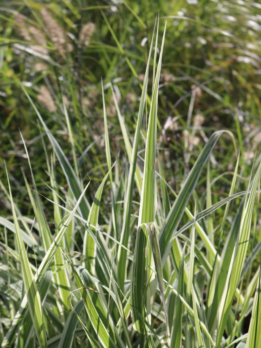 Das Buntblättrige Pfahlrohr ‚Variegata‘ eignet sich perfekt für die Bepflanzung von Freiflächen und Teichrändern. So wird der eigene Garten zu einer Oase der Ruhe und des Friedens. Das Buntblättrige Pfahlrohr mit dem botanischen Namen Arundo donax ‚Variegata‘ zählt zu den ältesten Gräsern. Es war im Altertum als ‚lakonisches Rohr‘ bekannt. Dieses wunderschöne Gras hat seinen mutmaßlichen Ursprung in Vorderasien oder Indien und fand ihren Weg in den gesamten Mittelmeerraum. Das Buntblättrige Pfahlrohr ‚Variegata‘ ist eine weiß-grüne Züchtung und zeichnet sich nicht alleine durch seine bunte Optik aus. Auch der bogig geneigte bis aufrechte Wuchs ist eine wahre Freude. Diese Sorte besticht durch besonderes Blattwerk. Es zeigt sich in weiß-grüner Färbung. Jedes einzelne Blatt ist mit mehreren weißen Längsstreifen verziert. Wunderschön anzusehen! Ein traumhafter Eindruck entsteht im Bereich von Teichanlagen. Dieses rhizombildende Gras gehört zur Familie der Süßgrasgewächse (Poaceae) und stellt neben dem Schilf die größte Süßgrasart auf europäischem Gebiet dar. Im Garten bevorzugt das Buntblättrige Pfahlrohr ‚Variegata‘ einen sonnigen Standort. Der Boden ist idealerweise wenig bis normal durchlässig, frisch bis feucht, nährstoffreich und humos. Gerade im Arrangement mit halbhohen Blütenpflanzen, ergeben sich spannende und sehenswerte Bereiche im Garten.
