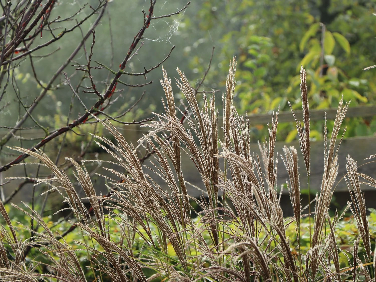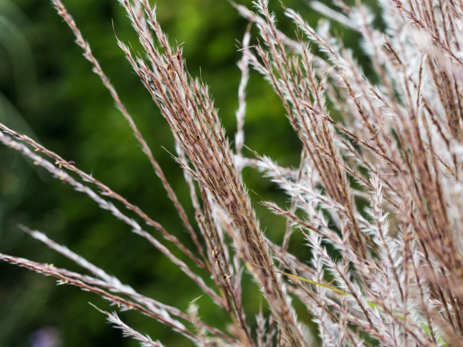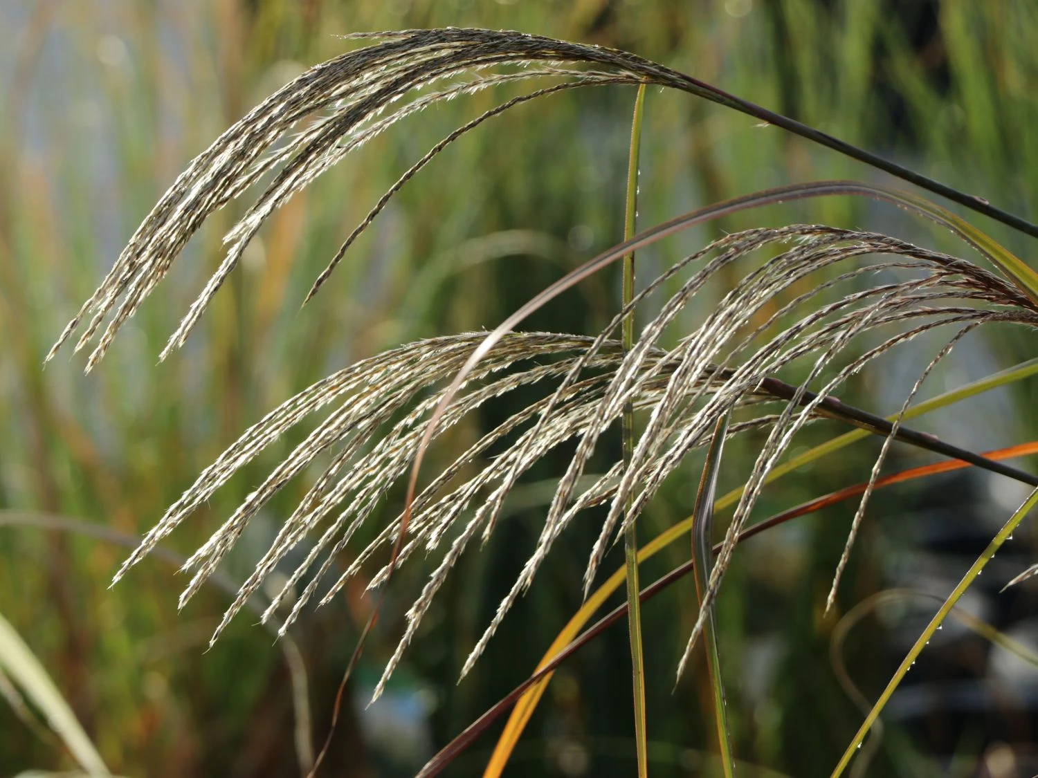 Das Chinaschilf ‚Kleine Silberspinne‘ verfügt über einen aufrechten, bogig geneigten Wuchs. Seine Halme sind sehr fein und riemenförmig, ihre grüne Farbe tauschen sie im Herbst gegen eine bräunliche Tönung.