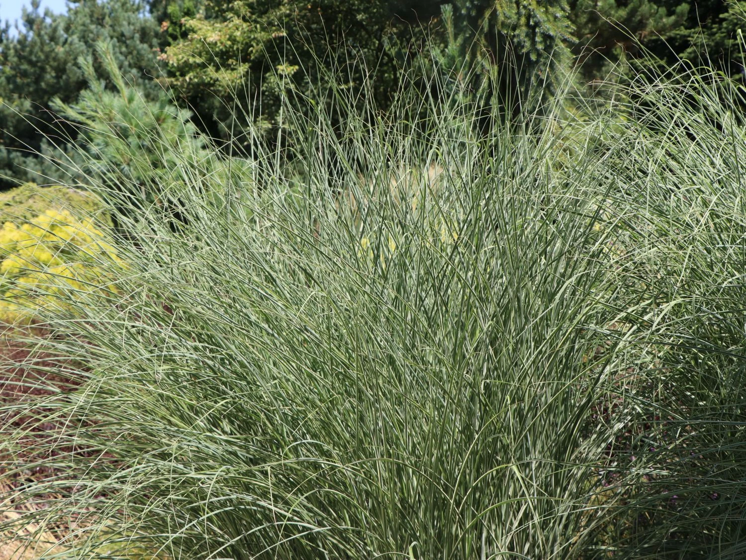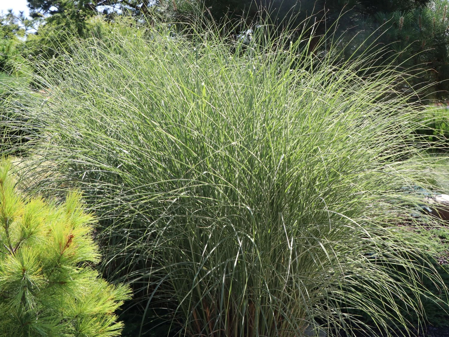 Das Chinaschilf ‚Morning Light‘ ist ein elegantes Ziergras, das Leichtigkeit vermittelt. Die schmalen riemen- bis bandförmigen Blätter wirken besonders im Sonnenlicht graziös. Sie entfalten durch den schmalen weißen Streifen in der Mitte eine ganz eigene, bezaubernde Eleganz. Hervorragend eignet sich (bot.) Miscanthus sinensis ‚Morning Light‘ als Solitärpflanze, da das Gras zu einem breiten Horst heranwächst. Die Pflanze gibt dem Garten Struktur und hebt sich besonders vor dunklen Hintergründen durch ihre Färbung und Leichtigkeit vorteilhaft ab. Vor einer Hauswand oder im Vordergrund einer Gehölzgruppe setzt das Chinaschilf ‚Morning Light‘ einen lichten Akzent. Das Gras erreicht eine Höhe von 100 bis 120 cm. Auch gemeinsam mit anderen Gräsern und blühenden Pflanzen macht es eine gute Figur in Beeten und dem Rand von Freiflächen.