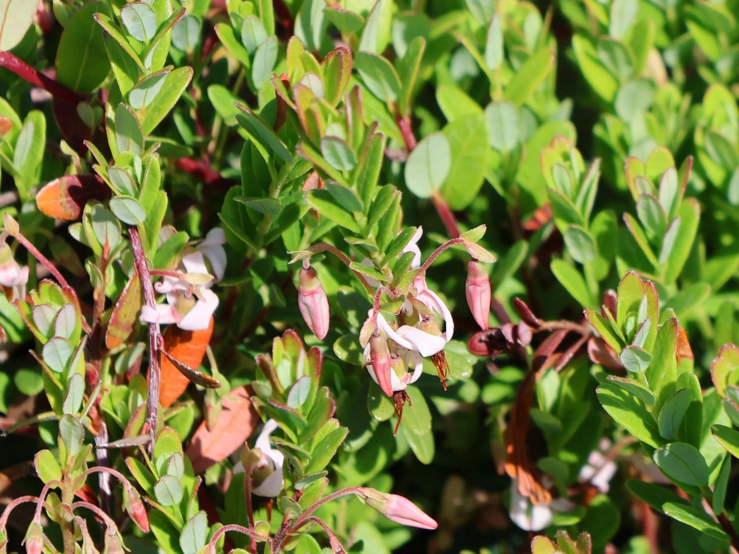 Wer seinen Garten mit derCranberry / Großfruchtige Moosbeere ‚Red Star‘ / ‚Howes‘ bereichert, gewinnt in vielerlei Hinsicht doppelt. Diese Pflanze ist das ganze Jahr über attraktiv. Zum einen mit ihrer liebreizenden Blüte, die ‚Red Star‘ / ‚Howes‘ in der Zeit von Mai bis Juni erstrahlen lässt. In einem wunderschönen Rosa leuchten die vielen kleinen Blüten der Vaccinium macrocarpon ‚Red Star‘ / ‚Howes‘, wie die Sorte botanisch genannt wird, auf. So entsteht bereits im späten Frühling bis Frühsommer ein attraktiver Blütenzauber, der sich genießen lässt. Zu der Blüte gesellt sich das attraktive hell frischgrüne Blattwerk der Pflanze, das zudem leicht glatt ist. Dieses glänzt mit einer immergrünen Präsenz, die sich nicht nur zur Blüte kontrastgebend zeigt, sondern auch in Kombination mit anderen Pflanzen herrlich wirken kann. Das diese Sorte immergrün ist, verleiht ihr natürlich auch im Winter eine besondere Attraktivität.