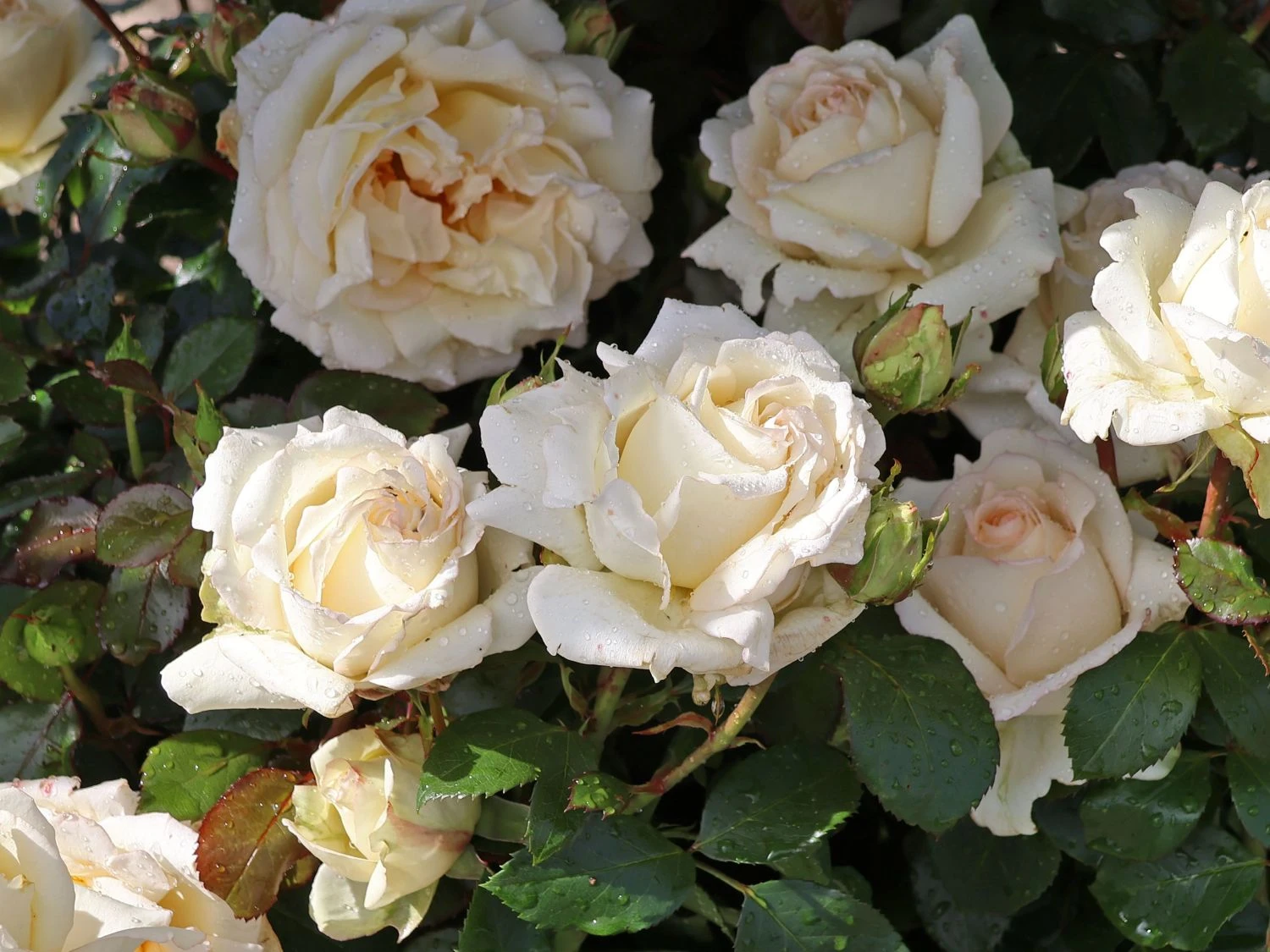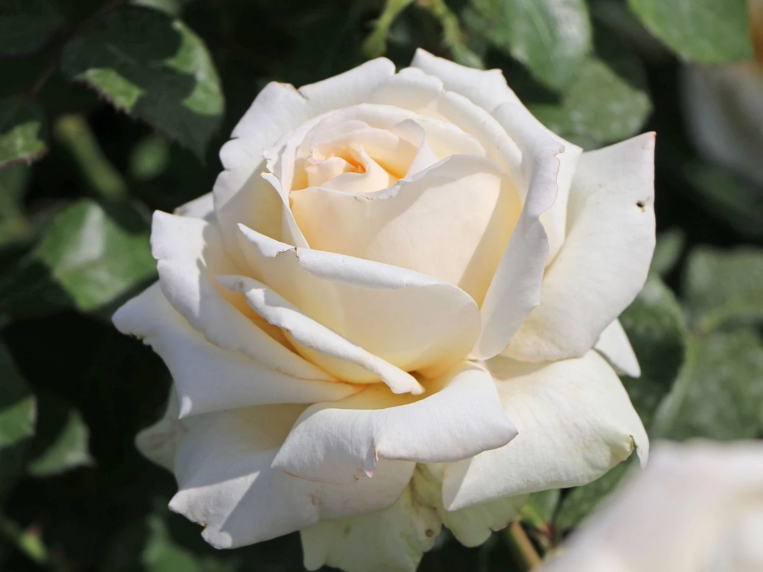 Die Edelrose ‚Ambiente‘ ® setzt mit ihren aparten Blüten romantische Akzente im Garten. Sie begeistert mit ihrer langen Blütezeit, den besonders lange haltbaren Blüten und der hervorragenden Blattgesundheit. Ihr herrlicher Flor verschönert den Garten von Juni bis September. Die schalenförmigen Blüten zeichnen sich durch ihre edle Form und die starke Blütenfüllung aus. Sie präsentieren sich in elegantem Cremeweiß, die Blütenmitte schimmert in zartem Cremegelb. Mit ihrem leichten, anmutigen Duft betören sie die Sinne. Das robuste Laub der Rosa ‚Ambiente‘ ® bildet mit seinem dunklen, glänzenden Grün einen phantastischen Kontrast zu den hellen Blüten. Es ist gefiedert, oval geformt und besitzt einen gesägten Rand. Gegenüber Blattkrankheiten ist das Laub unempfindlich. Die Edelrose ‚Ambiente‘ ® wächst aufrecht, buschig und gut verzweigt. Ihre Höhe liegt zwischen 70 und 80 Zentimetern, die Breite beträgt 40 bis 50 Zentimeter. Im Jahr 2001 brachte der Züchter Noack die Sorte auf den Markt.