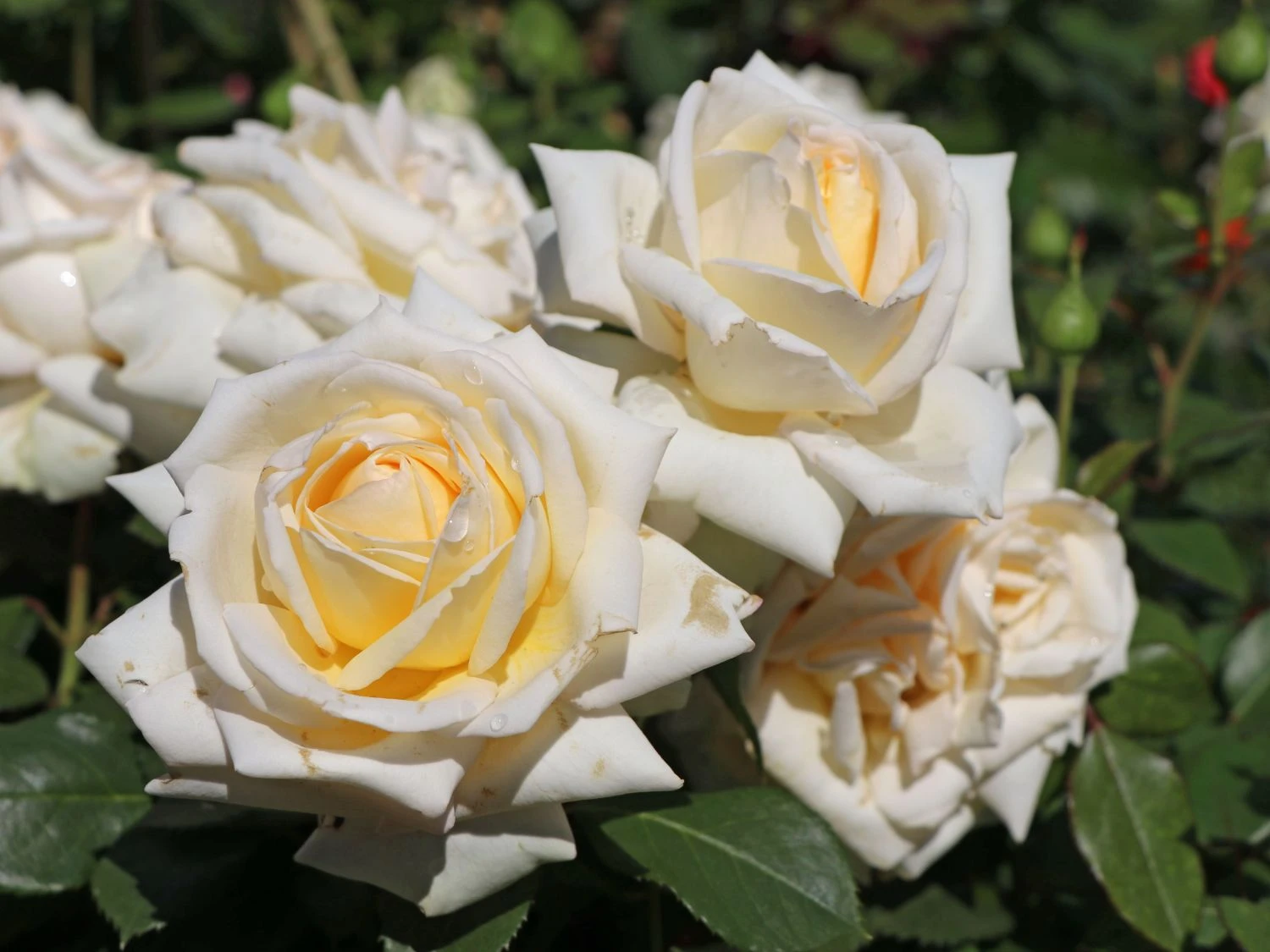 Mit ihren prächtigen Blüten, dem attraktiven Laub und dem ansprechenden Habitus ist die Edelrose ‚Ambiente‘ ® ein bezaubernder kleiner Solitärstrauch. Auf dem Beet und in der Rabatte brilliert sie einzeln oder in Gruppen von vier bis sechs Pflanzen pro Quadratmeter. Ihre cremeweiß bis cremegelb gefärbten Blüten harmonieren perfekt mit rot oder rosa blühenden Rosensorten. Sie gesellt sich mit Vorliebe zu Lavendel, Steppen-Salbei oder Waldreben. Als Kübelpflanze ziert sie den Balkon, die Terrasse oder den Eingangsbereich. Ihre haltbaren Blüten eignen sich optimal für den Schnitt. In der Vase sorgen sie für eine stilvolle Atmosphäre in den Wohnräumen. Rosa ‚Ambiente‘ ® liebt sonnige bis halbschattige Standorte. Sie wächst auf einem frischen, gut durchlässigen, tiefgründigen und humosen Boden. Bei trockenem Wetter gießt sie der Gärtner regelmäßig. Die Edelrose ‚Ambiente‘ ® ist gut winterhart Um die Bildung neuer Knospen zu fördern, schneidet der Gartenfreund regelmäßig die verwelkten Blüten ab.