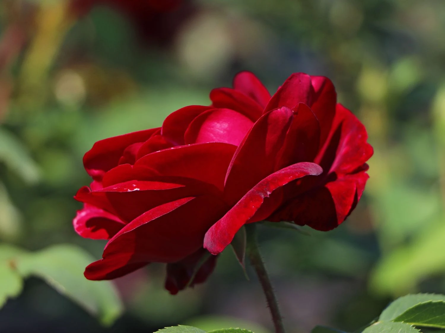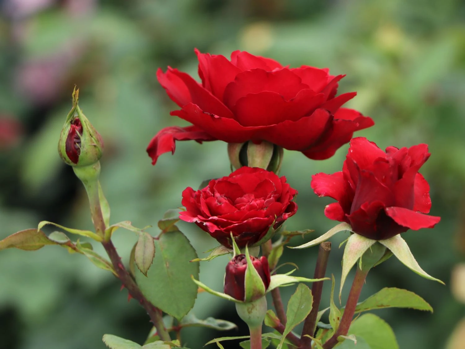 Die Edelrose ‚Erotika‘ begeistert mit dunkelroten, samtigen Blüten. Der sinnliche, würzige Duft verspricht ein verführerisches Erlebnis. Im Juni öffnen sich die ersten Knospen zu sehr vollen, großen und schlanken Blüten. Das samtige Dunkelrot der Blüten setzt sich zum Dunkelgrün der gefiederten Blätter auf faszinierende Weise ab und (bot.) Rosa ‚Erotika‘ ist ein zauberhafter Blickfang im Garten. Die blühwillige und öfterblühende Schönheit erfreut mit ihren stark duftenden Blüten bis in den Oktober hinein. Der Duft wirkt noch intensiver an einem sonnig gewählten Standort. Sie fühlt sich im Blumenbeet wie auch im Kübel auf der Terrasse wohl. Der Rosenstrauch ist von kräftigem und aufrechtem Wuchs und erreicht eine Höhe von 120 Zentimetern. Die Edelrose ‚Erotika‘ ist blühwillig, robust und hat ein außerordentlich gesundes Blattwerk. Die gefiederten Blätter erscheinen leicht rötlich und nehmen später ihre satte, dunkelgrüne Farbe an. Die Rose eignet sich aufgrund ihrer herrlichen Blüten hervorragend als Schnittblume.