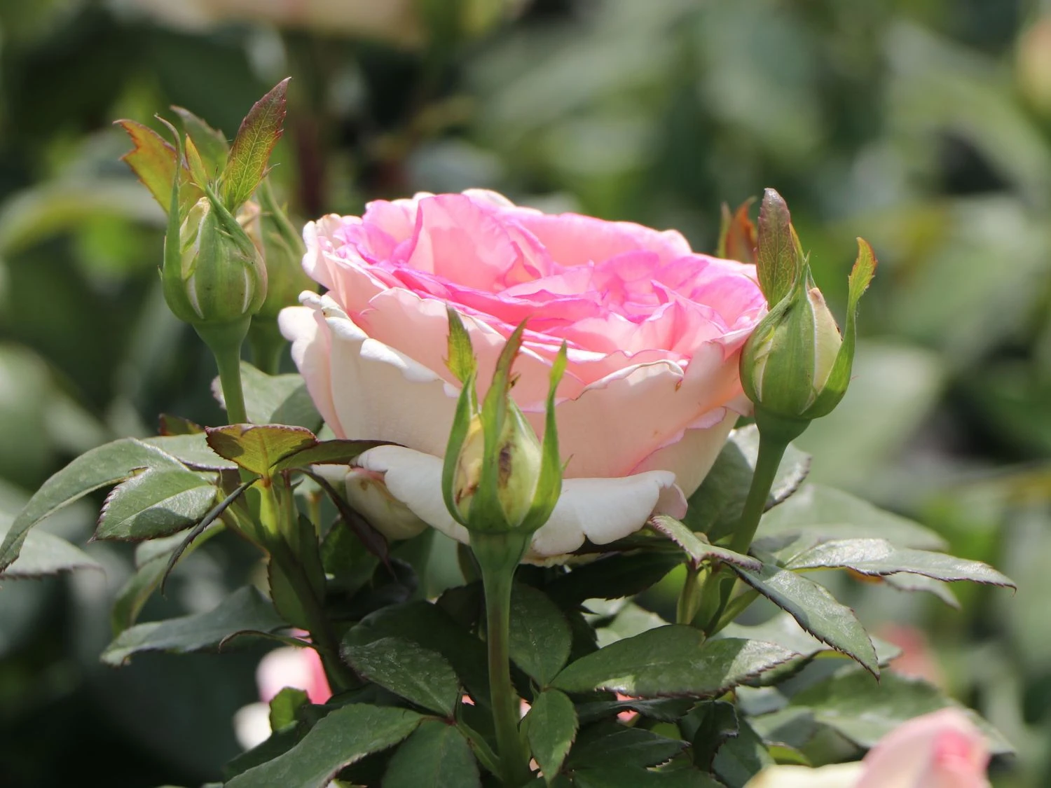 Mit der Edelrose ‚Souvenir de Baden-Baden‘ hat der Züchter W. Kordes‘ Söhne eine außergewöhnliche Pflanze geschaffen. Bei dieser eleganten Schönheit handelt es sich um eine seltene ADR-Rose. Die Auszeichnung steht für höchste Qualitätsansprüche bei Gartenrosen und ist eine der härtesten Rosenprüfungen der Welt. Schon auf den ersten Blick sind die Vorzüge von (bot.) Rosa ‚Souvenir de Baden-Baden‘ ADR-Rose ersichtlich. Die langstielige Rose verfügt über große, stark gefüllte Blüten mit gekerbten Blütenblättern in der zarten Farbkombination creme-rosa. Durch ihre lange Haltbarkeit und einen intensiven Duft eignen sich die Blüten hervorragend zur Präsentation in der Vase oder in einem Blumenarrangement. Im Garten setzen die dunkelgrünen Blätter des aufrecht und buschig wachsenden Strauches die Blüten der Edelrose ‚Souvenir de Baden-Baden‘ eindrucksvoll in Szene.