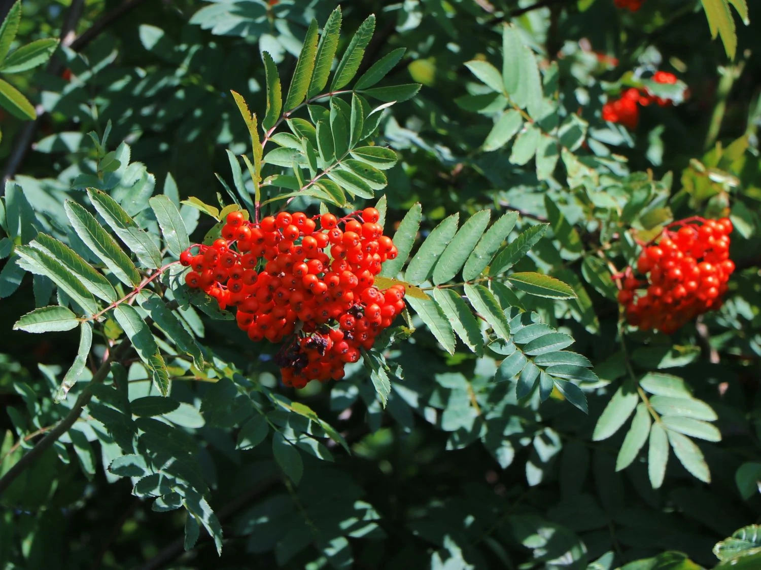 Die Blätter dieser Vogelbeere stehen wechselständig, sind unpaarig gefiedert und bis zu 15 Zentimeter lang. Unterseits sind sie heller als auf der Oberseite. Im Herbst begeistert Sorbus aucuparia ‚Konzentra‘ mit einer fantastischen Laubfarbe. Die Blätter färben sich in verschiedenen Gelb-, Orange- und Rottönen. Die Essbare Vogelbeere ist als Zier- und Vogelschutzgehölz geschätzt und lässt sich als Pionierbaum auf belasteten Flächen pflanzen. Die Essbare Vogelbeere / Eberesche ‚Konzentra‘ zieht mit den orange-roten Beeren alle Blicke auf sich und im Herbst macht die tiefrote Herbstfärbung des Laubkleids viel her. Die Essbare Vogelbeere / Eberesche ‚Konzentra‘ wächst überall und stellt keine Ansprüche. Ideal ist ein sonniger bis halbschattiger Standort sowie und ein humoser und frischer Boden. Temperaturen von bis zu -34°C machen der Essbaren Vogelbeere / Eberesche ‚Konzentra‘ nichts aus. Ein besonderer Schutz ist für das sommergrüne Obstgehölz nicht notwendig. Im Spätherbst fallen die bunt gefärbten Blätter ab und das Obstgehölz zieht sich zur Winterruhe zurück. Im kommenden Frühlung treibt ‚Konzentra‘ erneut frisch aus und begeistert mit ihrer Blütenfülle.