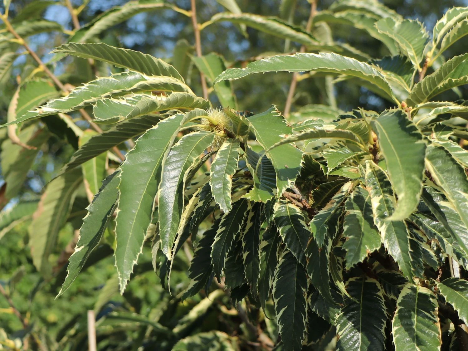 Die Esskastanie ‚Argenteovariegata‘ ist ein wahrer Gewinn für größere Gärten. Vor allem im Herbst zeigen sich die Vorzüge der (bot.) Castanea sativa ‚Argenteovariegata‘. Jedes Jahr im Oktober fallen in ganz Deutschland die Kastanien von den Bäumen. Neben denen der Roßkastanie, die für Basteleien dienen, begeistern die schmackhaften Früchte der Esskastanie. Sie sind als Maronen bekannt. Dieser Baum mit köstlichen Früchten ist in Kleinasien und südlich der Alpen beheimatet. Vermutlich hat die Castanea sativa schon in der Römerzeit den Weg dorthin gefunden. Von hier gelangten die Früchte in die Supermärkte und auf die Weihnachtsmärkte Norddeutschlands. Dort finden sie sich als lose Früchte verkauft oder über dem offenen Feuer geröstet. Sie gehören heute zum Weihnachtsmarkt wie Punsch und Glühwein.