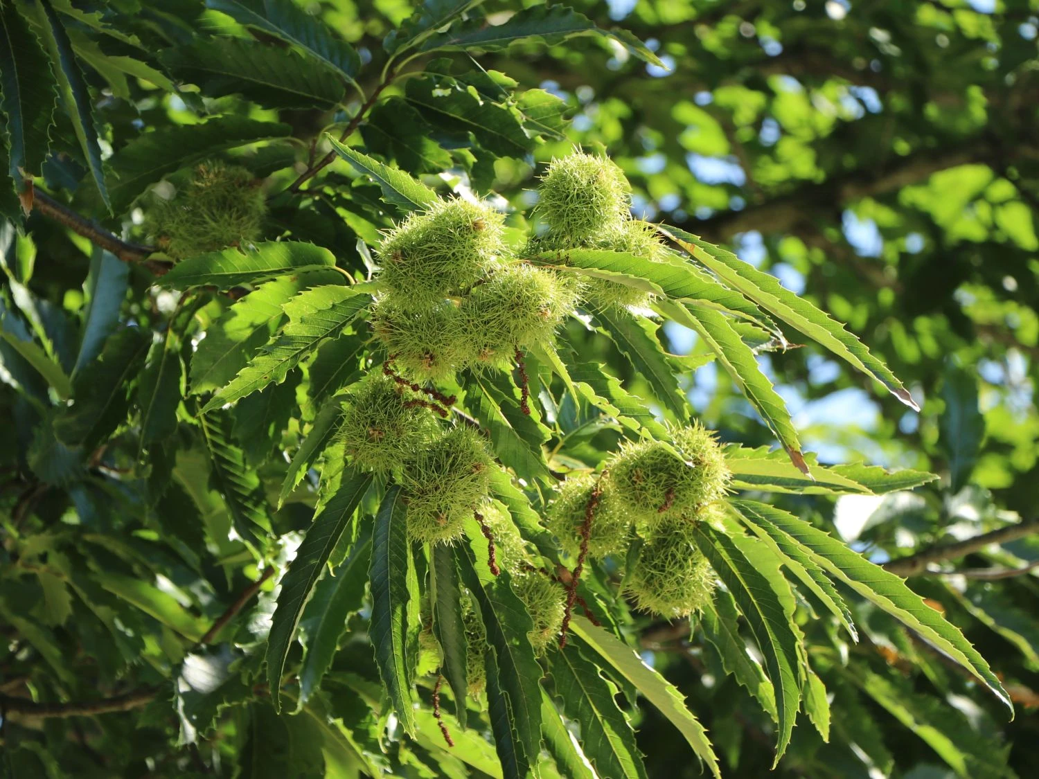 Die Esskastanie ‚Marsol‘ ist eine interessante Sorte für den Garten, da ihre Erträge früh einsetzen. Außerdem ist sie sehr gesund und gilt als robust. Denn die (bot.) Castanea sativa ‚Marsol‘ ist eine Hybridsorte, die aus der züchterischen Bearbeitung zwischen europäischer und japanischer Kastanie (Castanea sativa x Castanea crenata) hervorgegangen ist. Dabei entstand diese gegenüber dem Kastanienkrebs und der Tintenkrankheit widerstandsfähige Edelkastanie. Ab Ende September bietet die Esskastanie ‚Marsol‘ ihre köstlichen Früchte an, die viele als Maronen kennen. Sie sind von einer stacheligen Hülle geschützt, die bei Reife gut lösbar ist und schnell die Esskastanien in ihrer braunen Schale entlässt. Geröstet sind die ein echter Gaumenschmaus und entfalten herrlich nussig-süße Aromen! Auch gekocht kommen diese Nüsse bei vielfältigen Gerichten zum Einsatz. In früheren Zeiten dienten Esskastanien als Grundnahrungsmittel ganz ähnlich den Kartoffeln, mit denen sie die mehlige Konsistenz gemein haben. Die Früchte der Esskastanie ‚Marsol‘ lassen sich bei gewissenhafter Trocknung bis zu einem halben Jahr lagern.