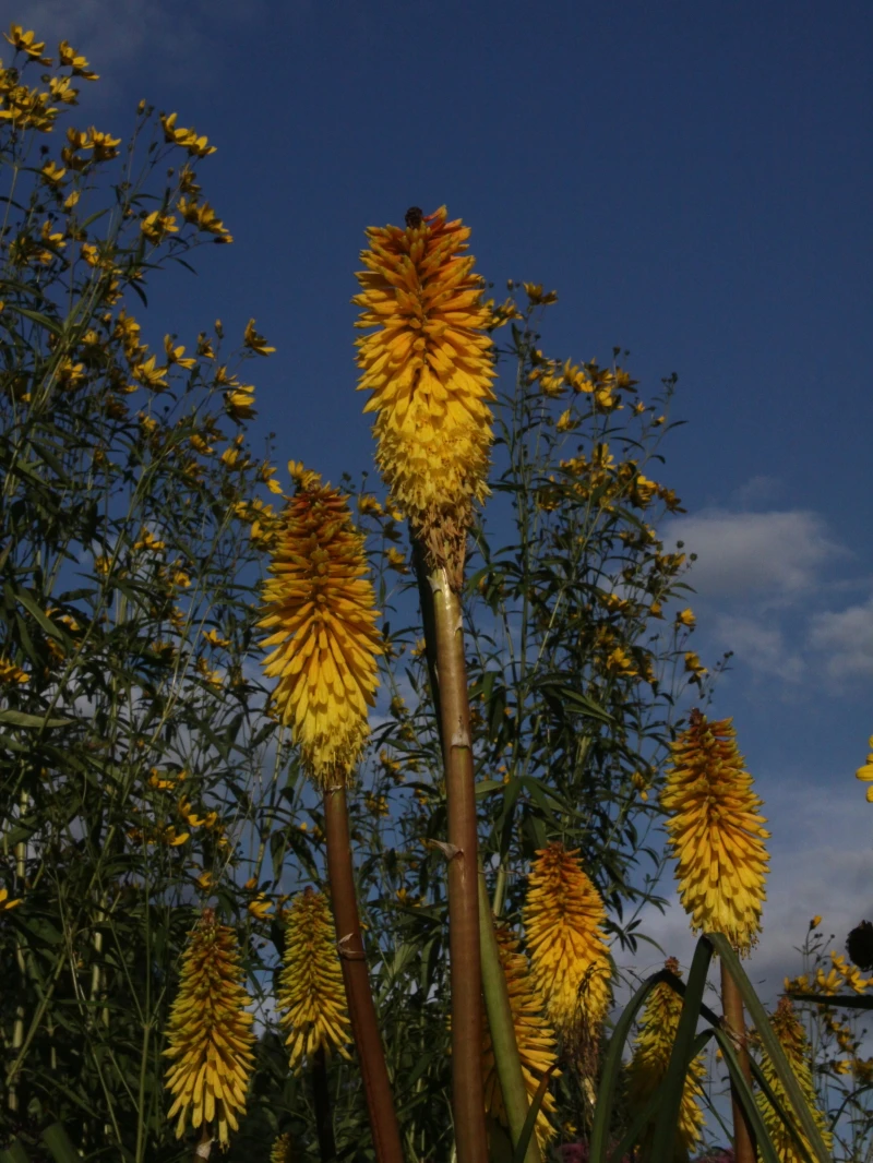 Kniphofia uvaria ‚Wrexham Buttercup‘ ist unkompliziert und robust. Sie entwickelt sich am besten an einem vollsonnigen, windgeschützten Standort im Garten. Ideal ist ein gut durchlässiger, nährstoffreicher und nicht zu trockener Boden. Staunässe verträgt die Fackellilie nicht. Zur Blütezeit zieht die Staude viel Wasser. Es empfiehlt sich, die Fackellilie morgens oder abends zu gießen. Die Fackellilie ‚Wrexham Buttercup‘ bedankt sich mit einer tollen Blütenpracht. Die Pflanze ist ein großartiger Solitär mit spektakulärer Farbbrillanz. Die exotische Diva spielt gerne die Hauptrolle im Beet. Auch mit anderen Stauden lässt sie sich wunderschön kombinieren. Am attraktivsten sieht die Fackellilie in einer Pflanzgruppe mit ihresgleichen aus. Sie ist schon von Ferne präsent und zieht alle Blicke auf sich. Pro Quadratmeter finden acht bis zehn Exemplare der ‚Wrexham Buttercup‘ einen ausreichenden Platz. Der Gärtner achtet beim Pflanzen auf einen ausreichenden Abstand von gut 35 Zentimeter. Tolle Pflanzpartner von ‚Wrexham Buttercup‘ sind Bartiris, Katzenminze oder Ziergräser. Auch am Gartenteich sieht die Fackellilie klasse aus. Die Fackellilie ‚Wrexham Buttercup‘ ist winterhart bis -12°C. Vor Kaltfrösten schützt eine Schicht Mulch und Reisig. Damit sich im Wurzelbereich keine Winternässe bildet, ist ein mit Sand versetzter Untergrund empfehlenswert. Die ideale Pflanzzeit für die Staude ist das Frühjahr. Die Fackellilie ‚Wrexham Buttercup‘ erweist sich als wenig arbeitsaufwendig und erfreut den Gartenfreund viele Jahre. Die Staude begeistert mit ihrem exotischen Flair.