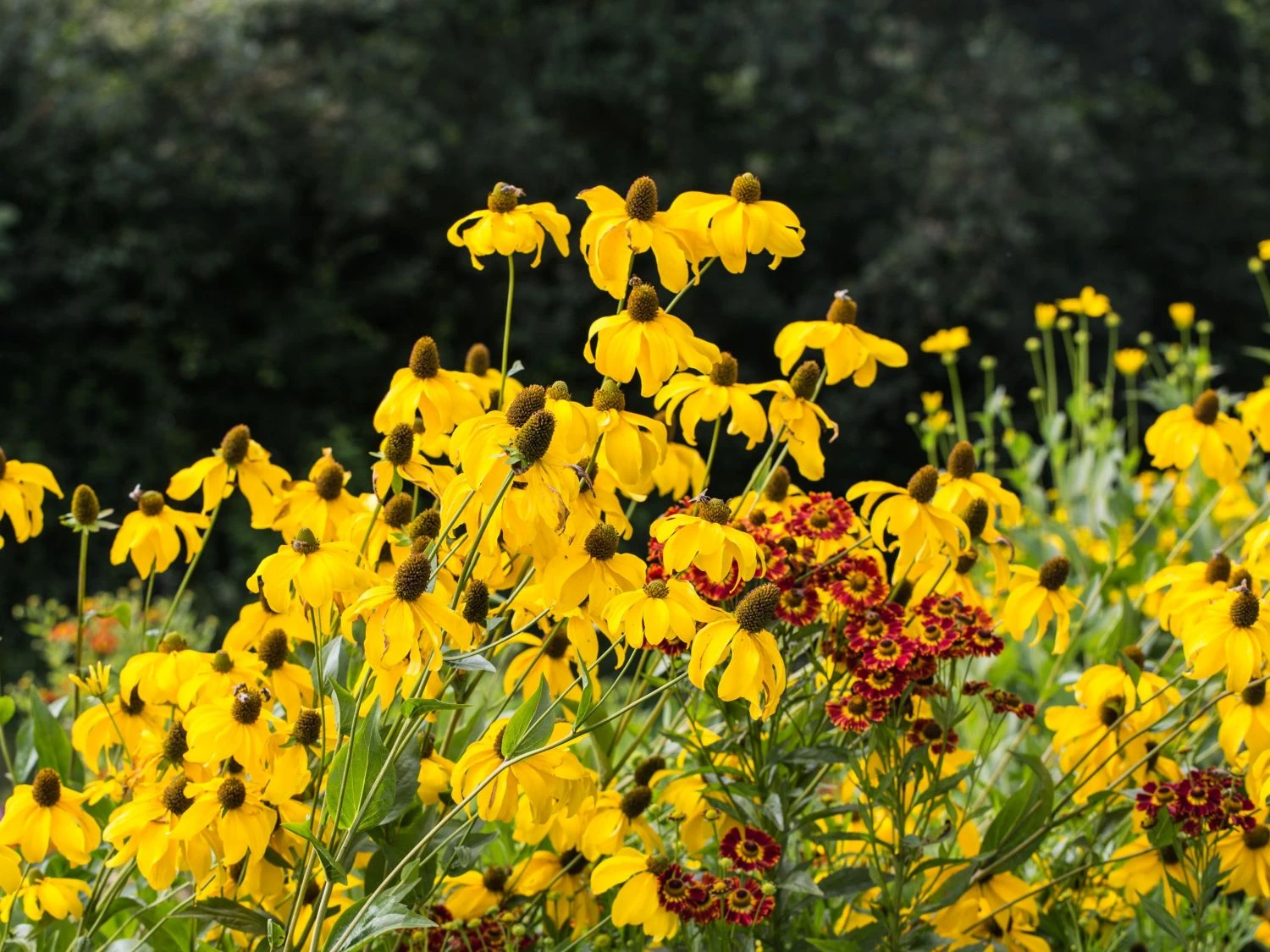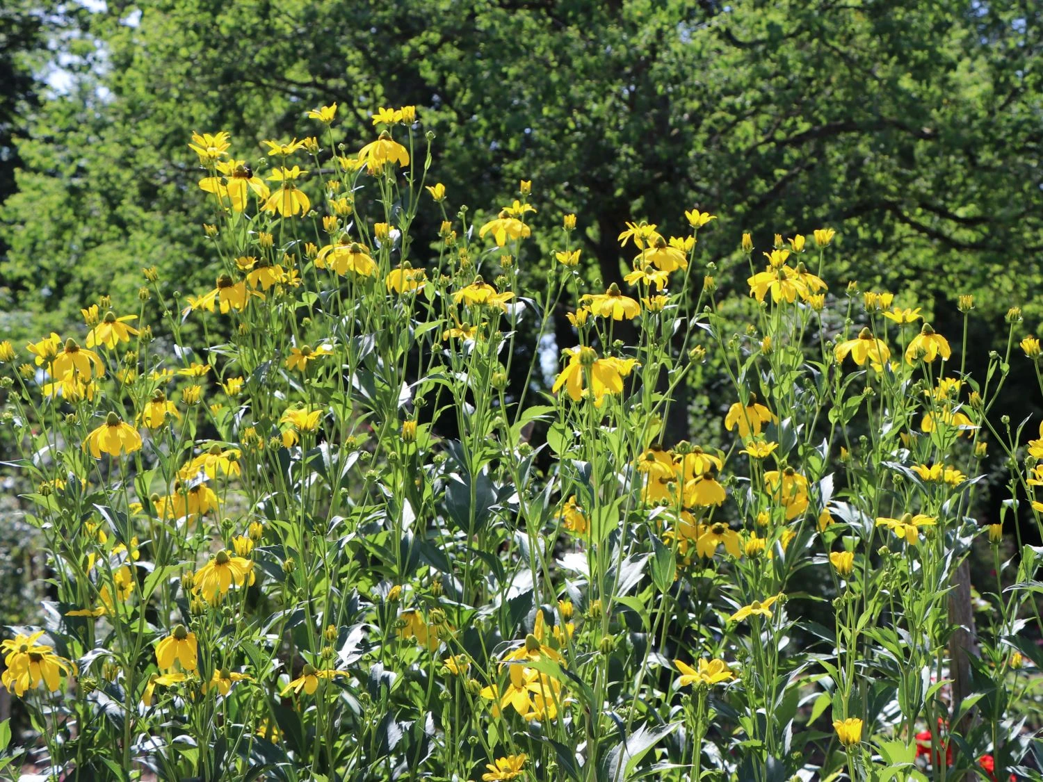 An den Standort stellt Rudbeckia nitida ‚Juligold‘ nur geringe Ansprüche. Am liebsten hält sich der Fallschirm-Sonnenhut ‚Juligold‘ jedoch an einem vollsonnigen Platz auf, an dem er über die Hälfte des Tages Sonnenlicht tanken kann. Ideal fügt sich der Fallschirm-Sonnenhut ‚Juligold‘ an den Teichrand, auf Freiflächen oder in Gärten mit Wildstaudencharakter ein. Zusammen mit anderen roten Sonnenhüten oder Astern lassen sich wundervolle Farbharmonien erzeugen, die alle Blicke sofort auf sich ziehen. Zwischen den einzelnen Pflanzen sollte allerdings auf einen Abstand von etwa 80 cm geachtet werden. Seine Wurzeln steckt der Fallschirm-Sonnenhut ‚Juligold‘ vorzugsweise in eine frische bis feuchte Erde, die zudem humus- und nährstoffreich als auch lehmig ist. Wichtig ist es, dass der Boden immer feucht gehalten wird. Staunässe – vor allem im Winter – sollte jedoch vermieden werden, denn diese verträgt der Fallschirm-Sonnenhut ‚Juligold‘ nicht.