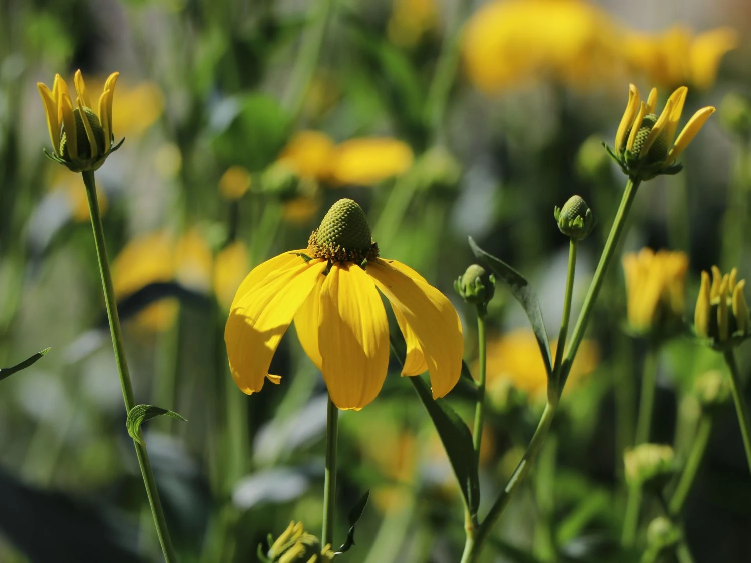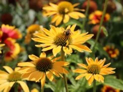 Der Fallschirm-Sonnenhut ‚Juligold‘ gehört zur Familie der Korbblütler und stammt ursprünglich aus Nordamerika. Seinen Namen ‚Juligold‘ trägt er augenscheinlich aufgrund seiner ganz besonders hervorstechenden, warmen und gelbfarbenen Blütenköpfe. Diese sind gewölbt und erinnern von ihrer Form her an kleine Fallschirme. Die Blütezeit des Fallschirm-Sonnenhuts ‚Juligold‘ beginnt, im Vergleich zu anderen Sonnenhüten, relativ früh. Die goldgelben Blüten besitzen ein grünbraunes Inneres und zeigen sich bereits im Juli. Bis in den August hinein setzen sie herrliche Akzente in den Garten.