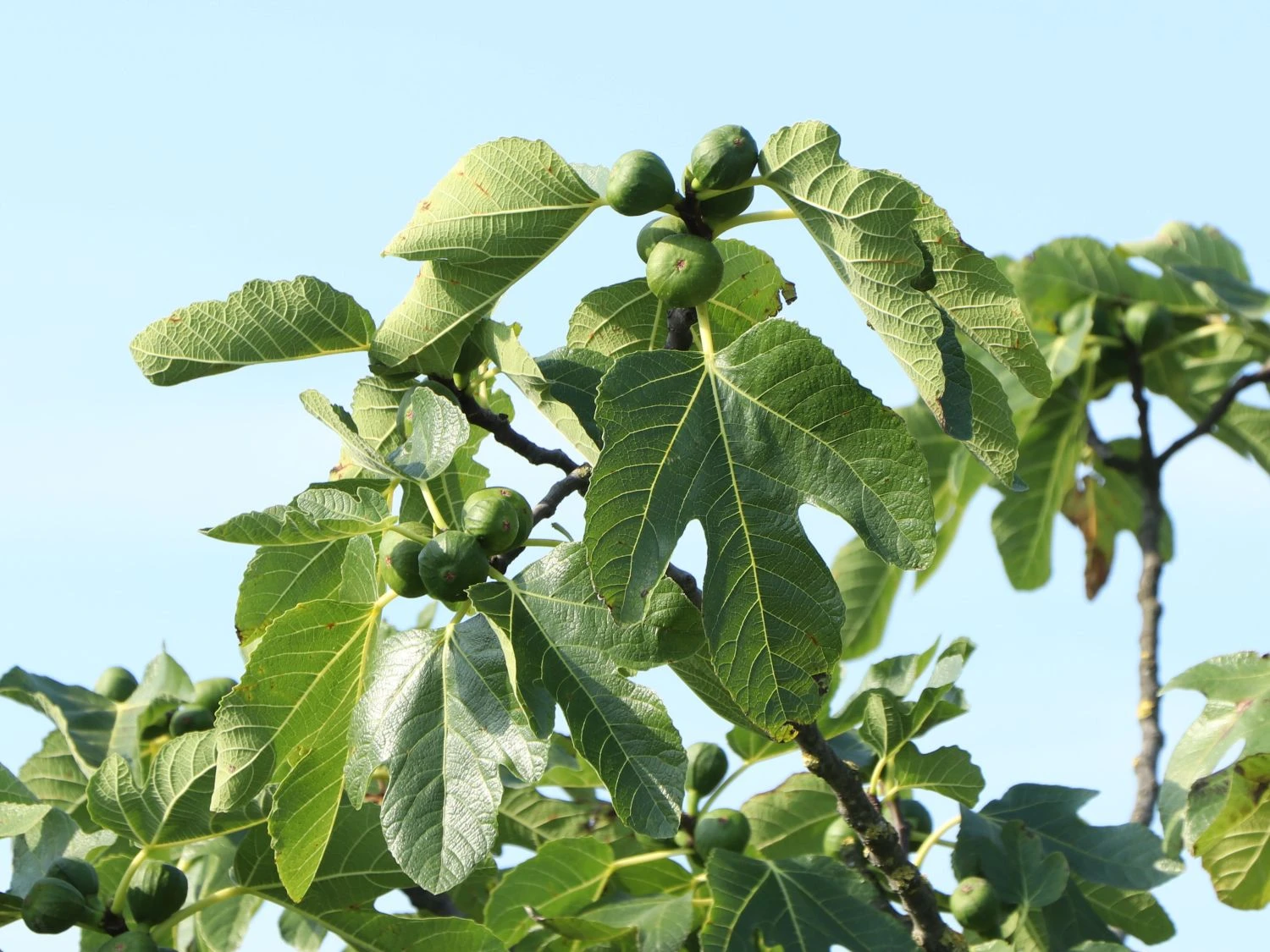An einem sonnigen, warmen und geschützten Standort entwickelt sich die Feige ‚Firoma‘ ® am besten. Das Obstgehölz wächst besonders gut auf einem humosen, nährstoffreichen Boden. Besonders zur Sommerzeit zieht der Feigenbaum viel Wasser. Daher lässt der Gärtner der Pflanze an heißen Tagen am besten morgens und abends reichlich Gießwasser zukommen. Ficus carica ‚Firoma‘ ® verträgt Temperaturen bis -10 Grad Celsius. An ungeschützten Standorten benötigen vor allem junge Echte Feigen einen Winterschutz. Frieren die Triebe bei strengen Kahlfrösten trotzdem zurück, treiben die Pflanzen im Frühjahr meist aus der Wurzel wieder aus. Die Winterhärte nimmt bei diesem Gehölz mit dem Alter zu, sofern es im Garten ausgepflanzt ist. Kübelpflanzen benötigen stets einen Winterschutz. Der Pflanzenfreund umwickelt den Kübel mit Stoff oder Folie und stellt ihn auf einer Styroporunterlage an eine schützende Hauswand. Alternativ bietet sich ein Überwintern in einem frostfreien Gewächshaus oder in einem ungeheizten Wintergarten an. Das Laub der Feige ‚Firoma‘ ® ist sommergrün. Die großen Blätter sind dunkelgrün und glänzend. Sie sind handförmig gelappt und nehmen im Herbst eine gelbe Farbe an bevor sich der Baum ihrer entledigt. Die beste Pflanzzeit ist von März bis in den Oktober. Der Feigenbaum erweist sich als unkompliziert und wenig arbeitsaufwendig. Ein Rückschnitt ist möglich. Zeigen sich zu viele Früchte am jungen Obstgehölz, kann der Gartenfreund diese auslichten, damit die übrigen Früchte größer werden.