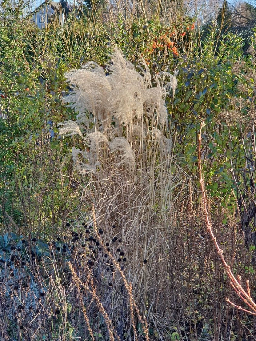 Im Herbst verfärbt sich das Laub orange bis leuchtend rot und dient als wahrer Blickfang im Eingangsbereich des Hauses, am Rande der Terrasse oder auf der großen Freifläche, wo Miscanthus sinensis ‚Graziella‘ für sich wirken und den Gärtner, sowie seine Gäste verzaubern kann. Ein Rückschnitt zur Überwinterung ist nicht notwendig und sollte sogar, aufgrund der attraktiven Optik der Pflanze im Winter, unterbleiben. Die Blütenstände und Blätter wirken vom Raureif überzogen oder mit einer leichten Schneeschicht bedeckt ebenso edel und zaubern selbst in der kalten Jahreszeit einen attraktiven Blickfang im Garten.