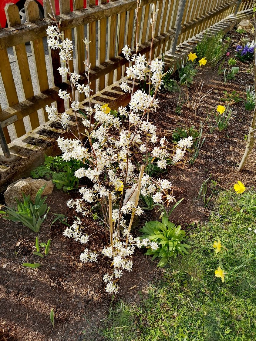 Die Felsenbirne ‚Prince William‘ überzeugt durch ihren Blütenreichtum und die außergewöhnlich großen Fruchterträge. Der breit-aufrecht und kompakt wachsende Strauch trägt die größten Früchte seiner Art. Auch die Tatsache, dass diese Sorte schon als junge Pflanze Früchte trägt, macht (bot.) Amelanchier ‚Prince William‘ so beliebt. Ab Ende April erscheinen große, dichte Blütentrauben in zartem Cremeweiß. Die zahlreichen, dekorativen Blüten sind circa 2 Zentimeter groß und sternförmig. Im Juni begeistert Felsenbirne ‚Prince William‘ mit einen hohen Ertrag an blauschwarzen Beeren. Das Aroma der Beeren ist süß, fruchtig und hat eine leicht säuerliche Note. Es erinnert an den Geschmack von Mandeln und Heidelbeeren. Die Früchte enthalten viele Mineralstoffe, Vitamin C und andere gesunde Inhaltsstoffe, die das Immunsystem und die Abwehr stärken.