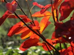 Genießen lassen sich die 10 bis 13 mm großen Früchte roh, als Saft oder auf Kuchen und als Kompott. Da die Beeren sehr viel Pektin enthalten, gelieren sie sehr gut und sind perfekt für Marmeladen und Gelee. In Bezug auf Standort und Klima ist die Felsenbirne ‚Prince William‘ recht anspruchslos. Lediglich auf verdichtete Böden reagiert das Obstgehölz empfindlich. Am wohlsten fühlt sich der Strauch an trockenen, sonnigen und warmen Standorten in humusarmer und kalkhaltiger Erde. Geeignet ist Amelanchier ‚Prince William‘ auch für kleinere Stadtgärten und Gefäße. Diese Zuchtsorte für den Garten gilt als perfekte Kombination von Zierde und Fruchtgenuss. Denn das Ziergehölz hat beim Austrieb bronzefarbene Blätter, die in Dunkelgrün übergehen und zum Ende des Gartenjahres eine wunderschöne orangerote Herbstfärbung annehmen. Außerdem erfreut die robuste Pflanze mit guter Winterhärte und ihrer Windverträglichkeit.