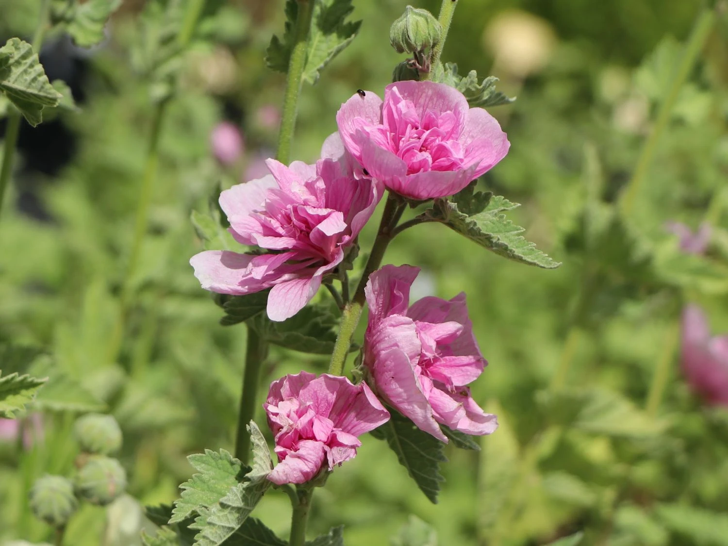 Alcalthaea-Sorten haben die Eigenschaft ihre ursprüngliche Farbgebung annehmen zu wollen. Die Pflanzen bleiben dann nicht farbtreu und bilden unterschiedlich gefärbte Blüten aus. An mancher Pflanze finden sich verschiedene Blütentriebe, die an einem Blütentrieb in Hellgelb und an einem anderen in Hellrosa blühen. Die Form der Blüten der Halbstrauchigen Stockrose ‚Parkrondell‘ erinnern an die Blüten des Hibiskus. Die Blütenschale bildet sich aus mehreren großen, einzelnen Blütenblättern. Diese Blätter sind im Inneren zart und fein verteilt. Dieses kunstvolle Werk der Natur verleiht die Optik einer halbgefüllten Blüte. Die Farbe der Blüten ist im inneren Bereich dunkler. Beinahe lila wirkt die schöne Färbung, die nach außen in ein zartes und helles Rosa verläuft. Manches Mal finden sich an einer Pflanze verschiedene Farben an den Blütentrieben. Das wunderschöne dunkle Grün der herzförmigen Blätter verstärkt noch die sagenhafte Schönheit der Blüten. Diese tolle Pflanze ist eine buschig wirkende, winterharte Staude. Allerdings zwingt sie dieser Wuchs nicht in eine Staudenrabatte hinein. Nebeneinander im Beet und als Begrenzung zum Gartenweg, bringt sie ihre ganze Attraktivität zum Ausdruck. Auch dieses schöne Gewächs stellt ein paar kleine Anforderungen an den Standort. So benötigt sie einen trockenen bis frischen und durchlässigen Gartenboden. Perfekt ist ein sonniger Standort. Besonders im Winter wirkt sich Staunässe nachteilig für die Wurzeln aus. Bei der Berücksichtigung dieser einfachen Bedürfnisse, erfreut die ‚Parkrondell‘ den Gärtner Jahr für Jahr zuverlässig mit wiederkehrender Schönheit im Garten.