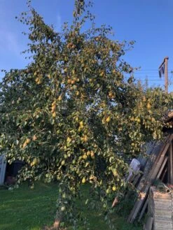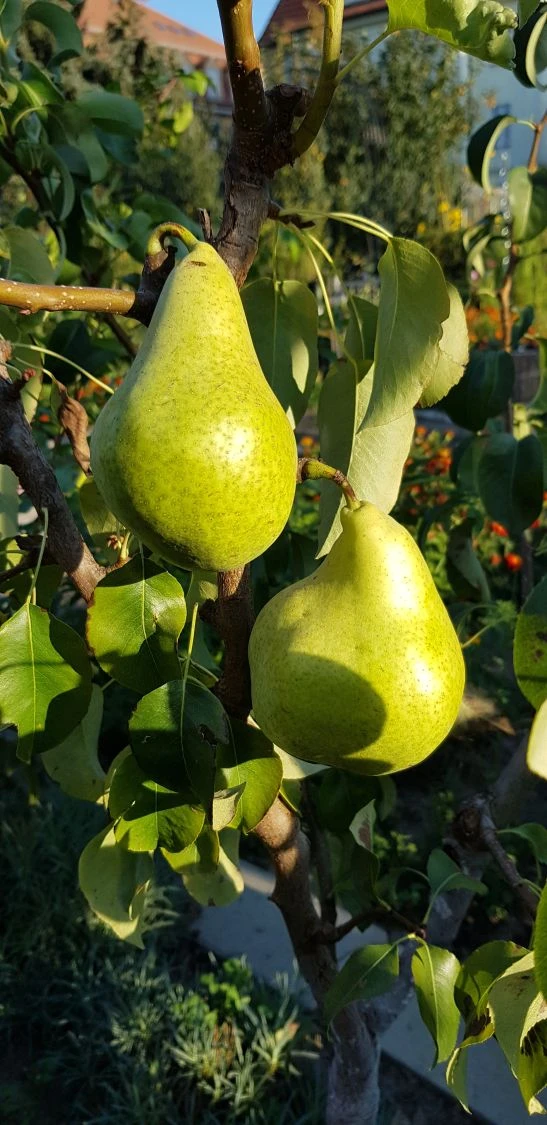 Um eine gute Ernte zu erzielen, ist der richtige Standort für die Herbstbirne ‚Condo‘ zu wählen. Bevorzugt steht der gut winterharte Kleinbaum in einem sonnigen bis halbschattigen Bereich auf locker-lehmigem Boden. Pyrus communis ‚Condo‘ wächst aufrecht, gut verzweigt und kegelförmig zu einer Höhe von 200 cm sowie zu einer Breite von etwa 150 cm heran. Der jährliche Zuwachs beträgt rund 20 bis 30 cm. Bei Bedarf ist ein jährlicher Rückschnitt im Zeitraum von Januar bis Februar durchführbar. Die eiförmigen Blätter sind wechselständig angeordnet und erreichen eine Länge von 4 bis 8 cm. Das schöne Mittelgrün der glänzenden Blätter der Herbstbirne ‚Condo‘ intensiviert sich im Herbst zu einem warmen Orangegelb. Die Früchte erreichen ab Oktober ihre volle Geschmacksreife. Das gelbweiße Fruchtfleisch hat eine mittelfeste Konsistenz und ist von einer glatten gelbgrünen Schale umgeben. Die Früchte eignen sich zum direkten Frischverzehr und sind beliebt für die Weiterverarbeitung zu Kompotten, Säften, Likören oder köstliche Süßspeisen.