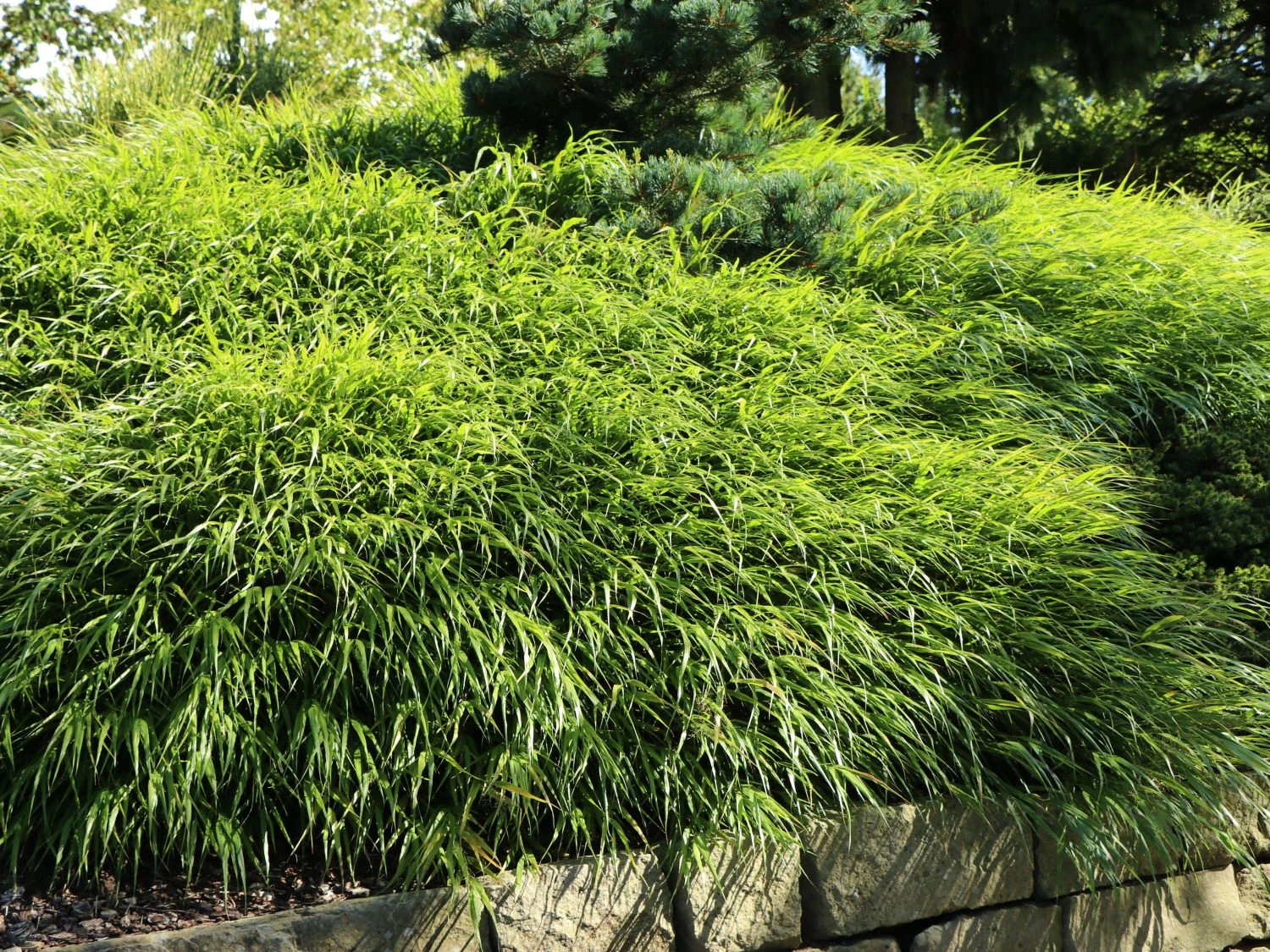 Mit seinen hohlen und knotigen Halmen, zählt das Japan Berggras zur Familie der Süßgrasgewächse. Wie sein Name schon andeutet, stammt es aus Japan. Es kommt ursprünglich vom Mount Hakone auf der Hauptinsel Honshu. Dort wächst das Japan-Zwergschilf in lichten Wäldern und an Waldrändern. Aus diesem Grund bevorzugt es in unseren Gärten einen halbschattigen bis absonnigen Standort. Das berücksichtigt der Gärtner bei der Pflanzung. Am besten gedeiht Hakonechloa macra auf frischen bis feuchten Böden. Die Erde ist locker, nährstoff- und humusreich ideal für das Wachstum der Pflanzen dieser Art. Sind diese Voraussetzungen gegeben, entwickelt sich das Japan-Berggras zu einem prächtigen Horst. In Japangärten bildet es einen markanten Blickfang und fügt sich in jedem anderen Garten ebenso harmonisch ein. Der Austrieb erfolgt im späten Frühjahr. Die Wartezeit belohnt das Japan Berggras mit Blättern, die in einem frischen Grün das Auge erfreuen. Die langen Blätter bilden in ihrer Fülle einen dichten, überschwänglich fallenden Horst.