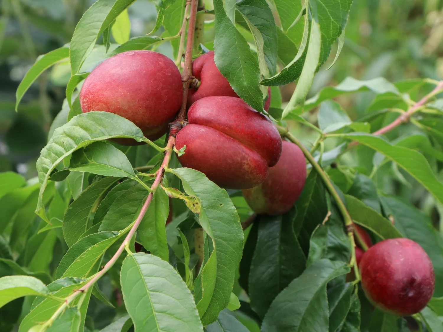 Die Nektarine ‚Nektarose‘ ist ein echtes Highlight für alle Liebhaber süß-saftiger Früchte, die an einen warmen Sommer im Süden erinnern. Im Mai trägt der Obstbaum kleine weiße Blüten. Die winterharte (bot.) Prunus persica var. nucipersica ‚Nektarose‘ besticht mit großen Früchten, deren Erntezeit ab Ende August beginnt. Wichtig für eine reichhaltige Ernte ist ein warmer, windgeschützter Standort mit viel Sonne, damit die Früchte der Nektarine ‚Nektarose‘ die nötige Größe entwickeln und entsprechend ausreifen. Bei voller Reife verfügen die grünlich-gelben Nektarinen, die fast vollständig rot überzogen sind, über ein weißes Fruchtfleisch mit einem Hauch ins Grünliche. Haben die Früchte ihre Vollreife erreicht, sind sie wegen ihrer Weiche druckempfindlich, der Stein lässt sich gut herauslösen.