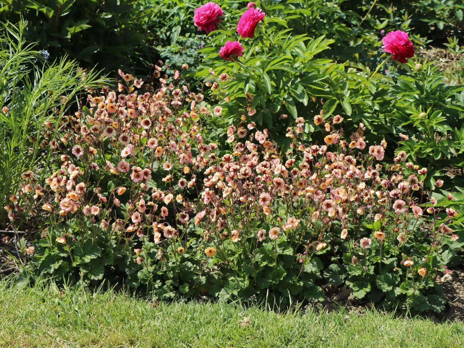 Der Nelkenwurz ‚Mai Tai‘ ® eignet sich außerdem zum Unterpflanzen von Gehölzen oder für einen Platz am Gehölzrand. Damit der Pflanzenfreund den Anblick dieses traumhaft schönen Sommerblühers genießen kann, empfiehlt sich ein Platz in Sichtweite von Terrasse oder Sitzplätzen. Was für einen fantastischen Anblick die apricotfarbenen Blüten bieten! Aufgrund der langen Stängel ist ‚Mai Tai‘ ® eine vorzügliche Schnittblume für die Vase, die Sommersträuße schmückt. Der Gärtner setzt auf einen Quadratmeter nicht mehr als zehn Pflanzen. Der Pflanzabstand beträgt etwa 35 Zentimeter, damit sich der Nelkenwurz gut entwickeln kann. Geum chiloense ‚Mai Tai‘ ® ist unkompliziert und winterhart. Die Staude macht kaum Arbeit. Der Gartenfreund entfernt lediglich die verblühten Triebe. Die Pflanze gehört zur Winterhärtezone Z6 und verträgt Temperaturen von -17,8 Grad Celsius bis -23,3 Grad Celsius.