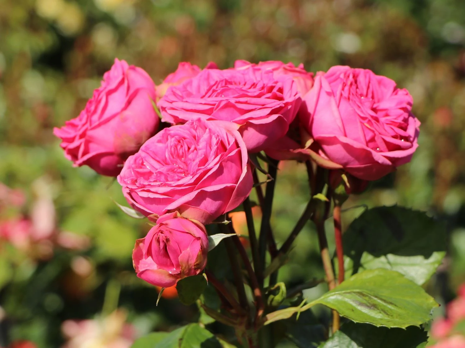 Die Nostalgie®-Edelrose ‚Pink Piano‘ ® hat einen unvergleichlichen Charme! Ihre großen Blüten zeigen sich formvollendet. Zunächst zeigen sie sich in einer attraktiven kugeligen Gestalt, die an Ranunkeln erinnert. Später entfalten sich die pinken Geschöpfe becherförmig und zeigen ihre zahllosen Blütenblätter. Die (bot.) Rosa ‚Pink Piano‘ ® überzeugt Liebhaber nostalgischer Rosen und lässt an vergangene Tage in Großmutters Garten denken. Ihre nostalgische Note spielt die Rosa ‚Pink Piano‘ ® im Zeitraum zwischen Juni und Oktober aus. Dann erscheinen die dicht gefüllten Blüten in reicher Zahl an diesem wundervollen Rosenstrauch. Auf sechs bis acht Zentimeter entfalten sich die einzelnen, in intensivem Pink leuchtenden Blüten. Bei dieser Sorte ist das Laub ausnehmend attraktiv! Es glänzt kräftig und begeistert mit Nuancen zwischen mittel- und dunkelgrün. Zur Freude des Gärtners zeigt sich die Nostalgie®-Edelrose ‚Pink Piano‘ ® robust und gut blattgesund gegenüber Mehltau. Diese Rose wächst aufrecht und kompakt auf eine Höhe von bis zu 130 Zentimeter. Als Solitär verleiht die Nostalgie®-Edelrose ‚Pink Piano‘ ® einer kleinen Rasenfläche eine einzigartige Optik. Im Vorgarten wirken ihre Blüten wie ein charmanter Gruß an den Besucher. Auf einer größeren Freifläche setzt eine Gruppe mehrerer Exemplare einen herrlichen Mittelpunkt und ist im Sommer die Attraktion im Garten! Zwischen drei und fünf Pflanzen finden auf einem Quadratmeter genügend Raum. Der Gärtner achtet auf einen Pflanzabstand von rund 50 Zentimetern zwischen den Rosen, um den einzelnen Sträuchern Platz zum Entfalten zu lassen.