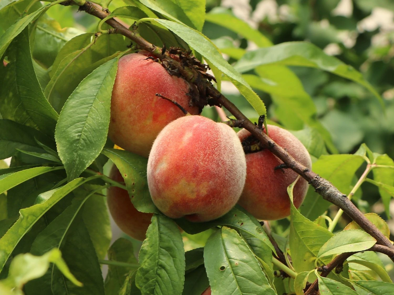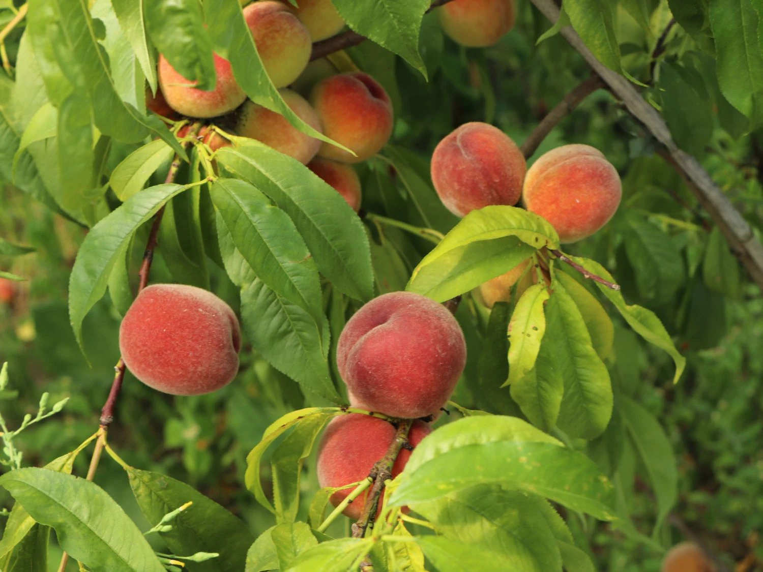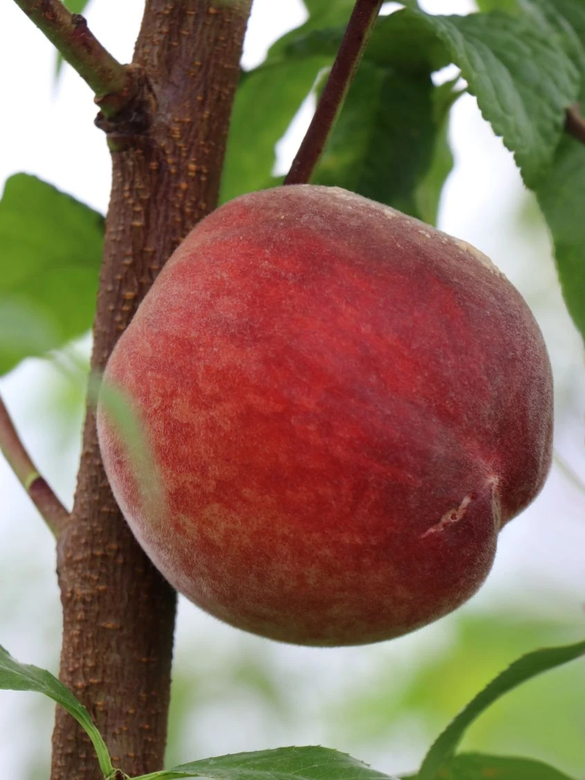 Der Pfirsich ‚Amsden‘ stammt aus den Vereinigten Staaten. Es handelt sich um eine robuste Sorte aus dem Jahr 1868 aus der Kultur des Gärtners namens L. C. Amsden / Missouri. Die Sorte ‚Amsden‘ war so erfolgreich, dass erste Sämlinge bereits 1876 nach Europa exportiert wurden. Das Besondere von (bot.) Prunus persica ‚Amsden‘ sind die regelmäßigen und guten Erträge und die zeitige Reife der Pfirsiche. Die Erntezeit beginnt im Juli und dauert bis in den August hinein. Die Früchte sind mittelgroß und schmackhaft. Ihre gelbe Schale ist markant marmoriert. Das Fruchtfleisch ist hell und lässt sich gut vom Stein lösen. Die Früchte sind als Tafelobst zum Frischverzehr geeignet und lassen sich für Süßspeien, Kuchen und Torten sowie zu Marmelade weiterverarbeiten. Der Pfirsich ‚Amsden‘ punktet mit seinen aromatischen Früchten und den wunderschönen weißrosa Blüten. Diese zeigen sich je nach Wetterlage zwischen Mitte und Ende März. Der Obstbaum ist mit seiner Blütenpracht ein Blickfang im Garten und lockt zahlreiche Insekten sowie Bienen und Hummeln an. Für den Obstliebhaber gibt es keinen schöneren Anblick als den blütenreichen Pfirsichbaum, der die Vorfreude auf eine gute Ernte weckt. Nach der Blühphase bildet der Pfirsichbaum ein sattgrünes Blattwerk aus. Das Blattwerk ist lanzettlich geformt und nimmt nach dem Sommer eine auffällige rote Farbe an.