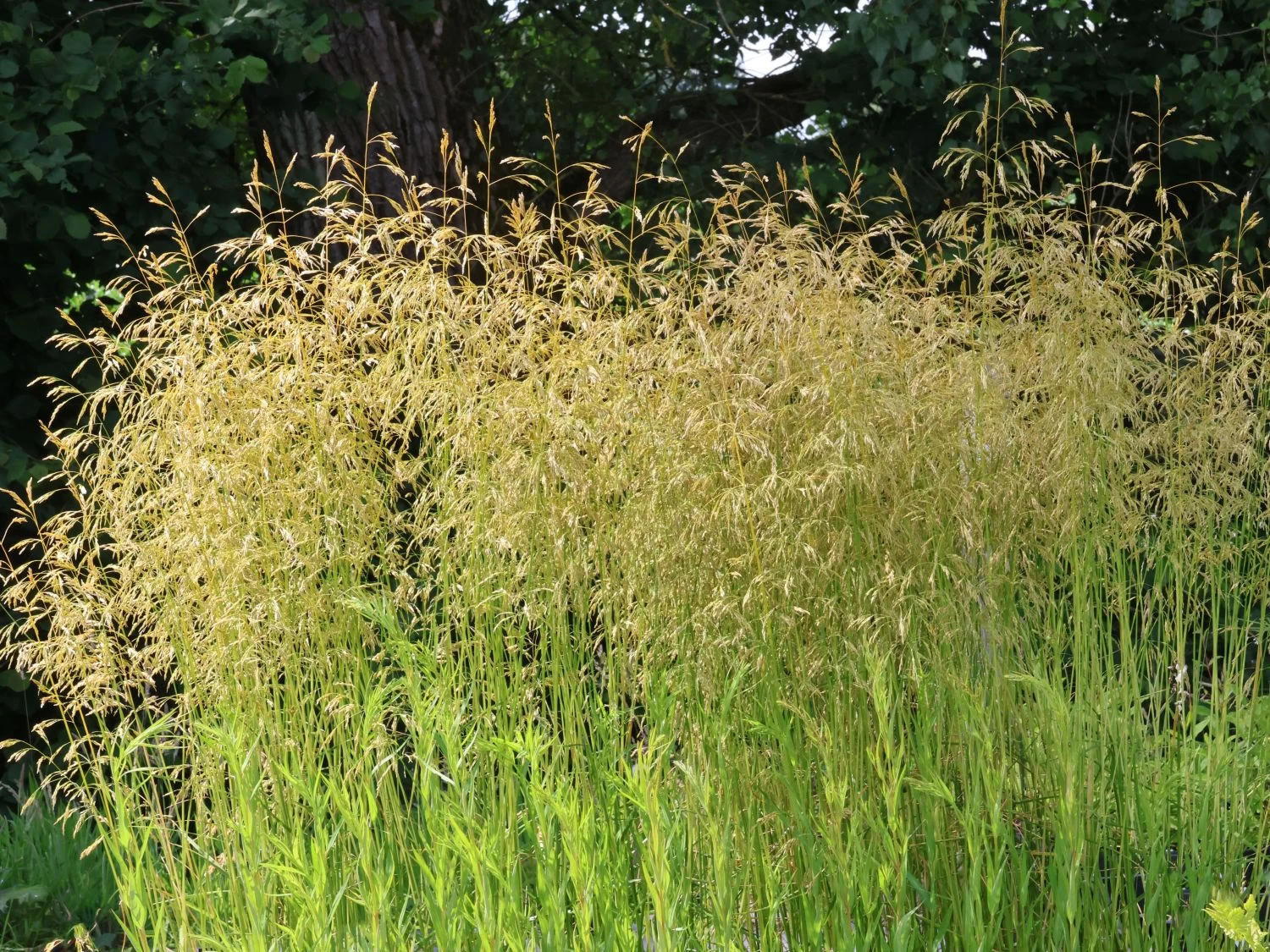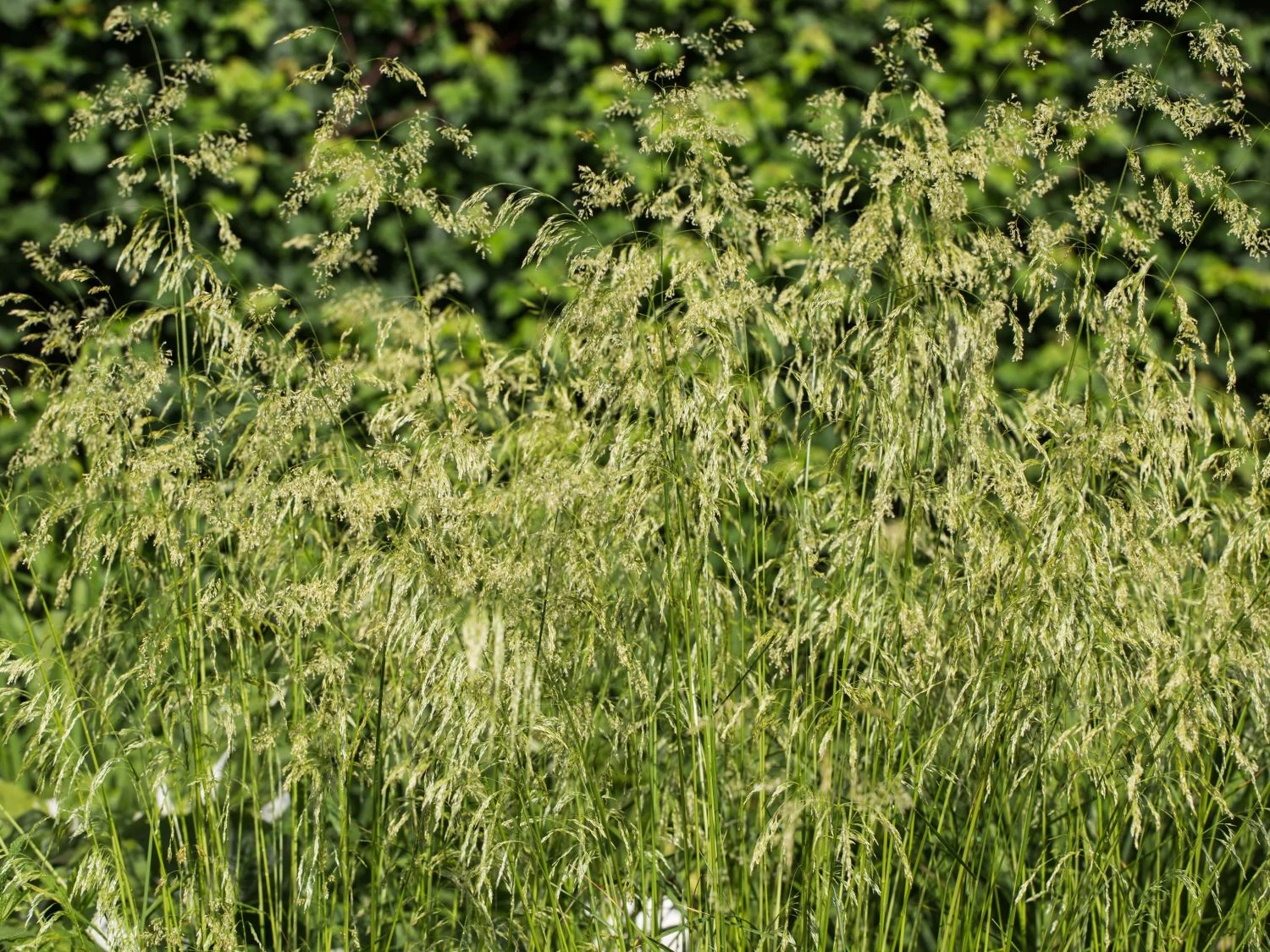 Während der Sommermonate Juni bis August blüht die Rasen Schmiele ‚Goldschleier‘ in einer hellen gelblichen Farbe. Diese wandelt sich im Laufe der Blütezeit nach und nach weitestgehend in einen edlen goldenen Ton. Somit verwöhnt sie das Auge ihrer Betrachter. Das Gras ist winterhart und sieht das ganze Jahr über dekorativ im Garten aus. Hervorragend bei Wind ist, dass sich die leicht gebogenen Stängel sachte wiegen und dermaßen lieblich anzusehen scheinen. Die Deschampsia cespitosa ‚Goldschleier‘ kann einzeln oder in sogenannten kleinen Tuffs ihren Platz finden und passt sich wirklich jeder Vorstellung an. So finden entweder kleine oder ebenso größere Flächen eine neue Bepflanzung im Garten.
