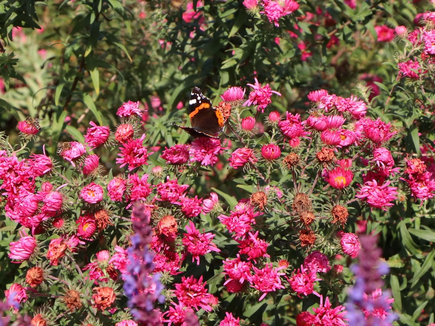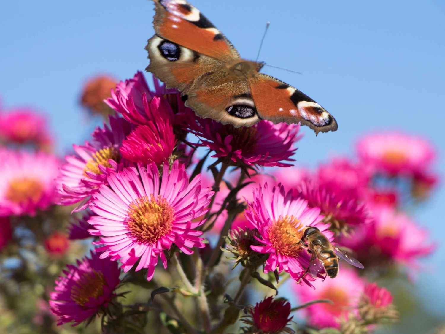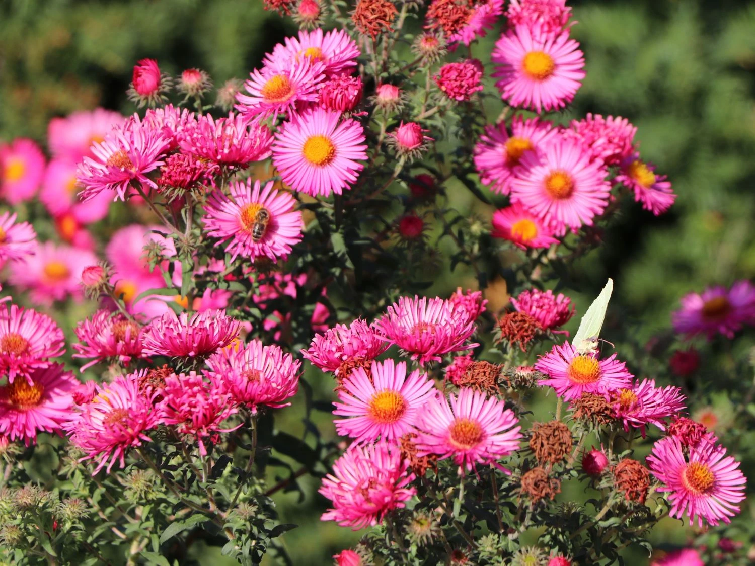 Doch diese Pflanze ist nicht nur zum anschauen, sie erfüllt auch einen mehr als praktischen Nutzen. Denn gerade der Oktober ist eine der größten Sammelzeiten für Bienenvölker, die sich einen so großen Leckerbissen garantiert nicht entgehen lassen wollen. Fans der Bienenzucht aber auch jene die in den Genuss eines der Imkerei fähigen Wildbienen-Stocks sind ist deswegen die ‚Lachsglut‘ eine unumgängliche Zuchtpflanze, garantiert sie doch den fleißigen Bienen Nahrung in den letzten Monaten des Sommers. Und wer sich an Bienen in seinem Garten nicht erfreuen kann sei hier beruhigt: auch wenn die Aster novae-angliae ‚Lachsglut‘ stärker duftet ist sie doch nicht zwangsläufig ein Magnet für ganze Bienenvölker.