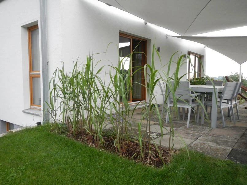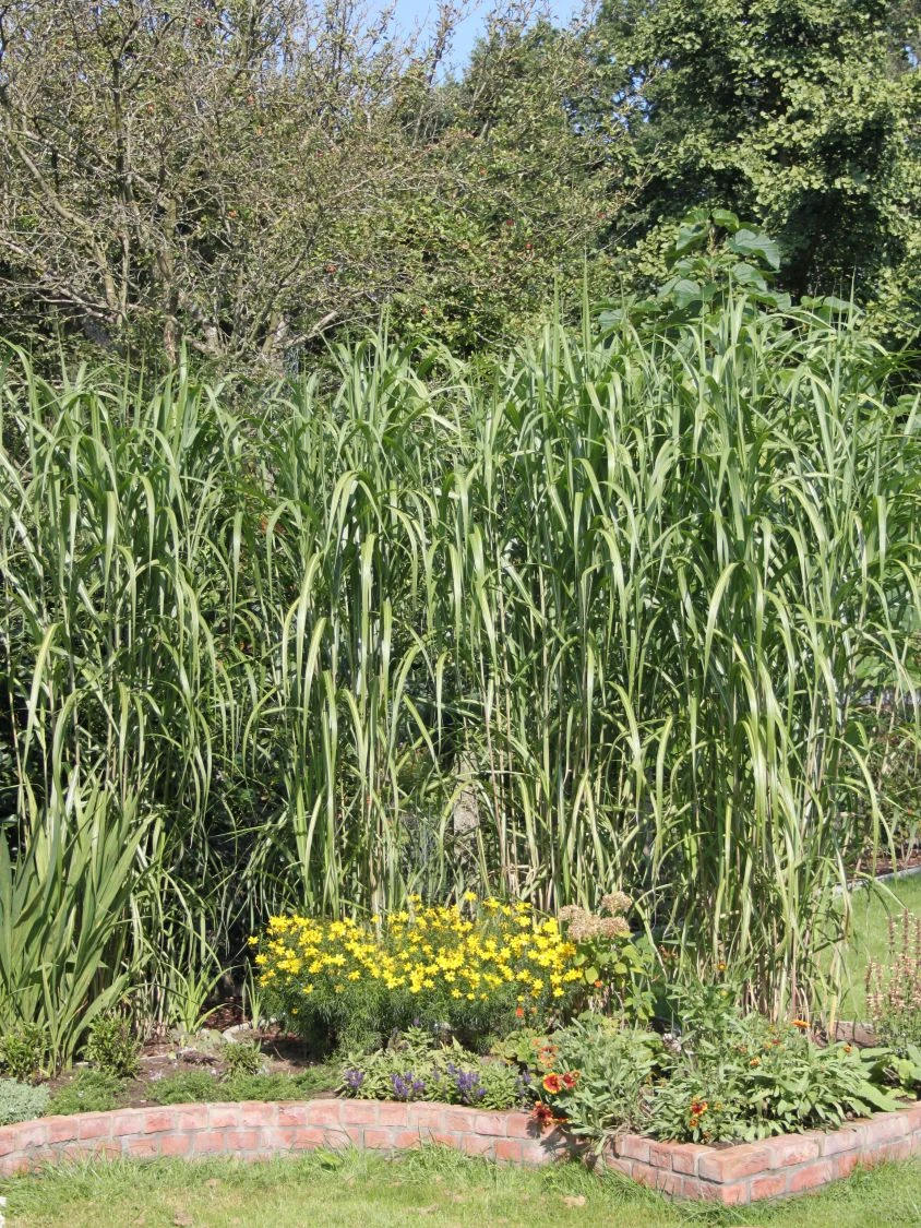 Doch an welchem Platz kommt das Gewächs am besten zur Geltung? Es kann für vielerlei Zwecke herangezogen werden. Es eignet sich sowohl in Einzelstellung sowie in kleinen Gruppen. Gute Effekte erzielt es zum Beispiel im Freiland. Dort zieht es sämtliche Blicke aufgrund seiner mächtigen Größe sofort auf sich. Weiterhin eignet es sich zur Bepflanzung eines Teiches oder eines Flussufers. Die dort vorzufindende Feuchtigkeit verträgt es gut. Außerdem kann es an Hauswände, in den Hintergrund großer Staudenbeete, in Kübel und in einen Steingarten gepflanzt werden. An eine Terrasse gepflanzt, bildet Miscanthus giganteus ‚Aksel Olsen‘ einen wertvollen Sichtschutz als auch einen gewissen Windschutz. Ferner kann die Pflanze als Schnittstaude verwendet werden. Dazu werden ein paar Halme abgeschnitten und zu einem Strauß zusammengebunden. In einer Vase wirkt dieser Strauß in getrockneter Form hübsch.