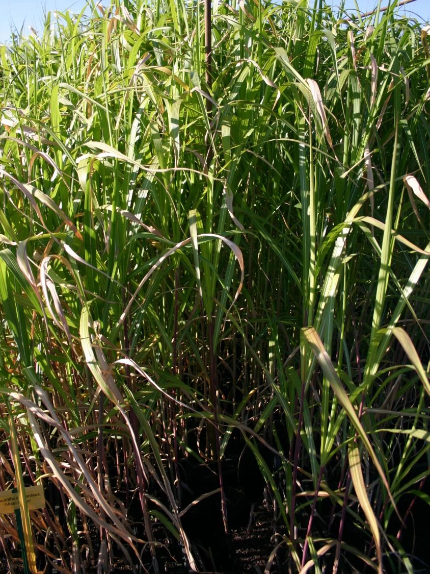Während die Wurzeln des Miscanthus giganteus ‚Aksel Olsen‘ bereits stabil und kräftig sind, zeigen sich die daraus hervorgehenden Triebe schnell als ebenso willensstark. Die jungen Triebe verwandeln sich schnell in starke Halme. Sie sind nicht hohl, sondern mit einem fleischigen Mark gefüllt. Generell haben sie den Hang straff aufrecht zu wachsen. Dadurch und aufgrund ihrer Festigkeit eignen sie sich ausgezeichnet für die Verwendung in der Floristik wie zum Beispiel für Dekorationszwecke und zur Anfertigung von Sträußen. Sie treiben jedes Jahr im April zuverlässig wieder neu aus, nachdem sie sich im Sommer allmählich braun verfärbt und im Winter ein wenig zurückgezogen haben.