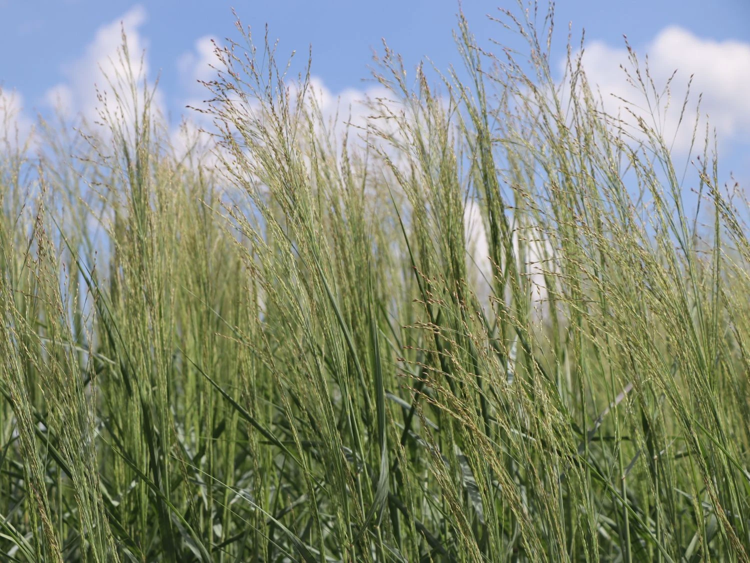Das Präriegras ist hart im Nehmen. Es ist robust und, einmal etabliert, auch widerstandsfähig gegen Trockenheit. Am liebsten steht es an einem vollsonnigen Standort in einem nicht zu trockenen Boden. Anders als ihre verwandten Rutenhirsen-Sorten wächst Panicum virgatum ‚Prairie Sky‘ kompakt und dichtbuschig. Dadurch ist die Ruten Hirse ‚Prairie Sky‘ auch für kleinere Beete, als Terrassenbepflanzung oder auch für den Kübel gut geeignet. ‚Prairie Sky‘ kommt am schönsten zur Geltung, wenn es sich in Gruppen auf großen Freiflächen entfalten darf, wie in seiner Heimat, der Prärie. Gräser haben schon lange unsere Gärten erobert und sind mittlerweile fester Bestandteil von Staudenanpflanzungen. Sie sind meist unkompliziert und geben der Bepflanzung einen natürlichen Charakter. Die Ruten Hirse ‚Prairie Sky‘ wird gerne in naturnahen Gärten oder als Teil eines naturalistischen Bepflanzungsstils verwendet. In Kombination mit entsprechenden farbenfrohen Stauden, lassen sich atemberaubend Pflanzkombinationen erzielen.