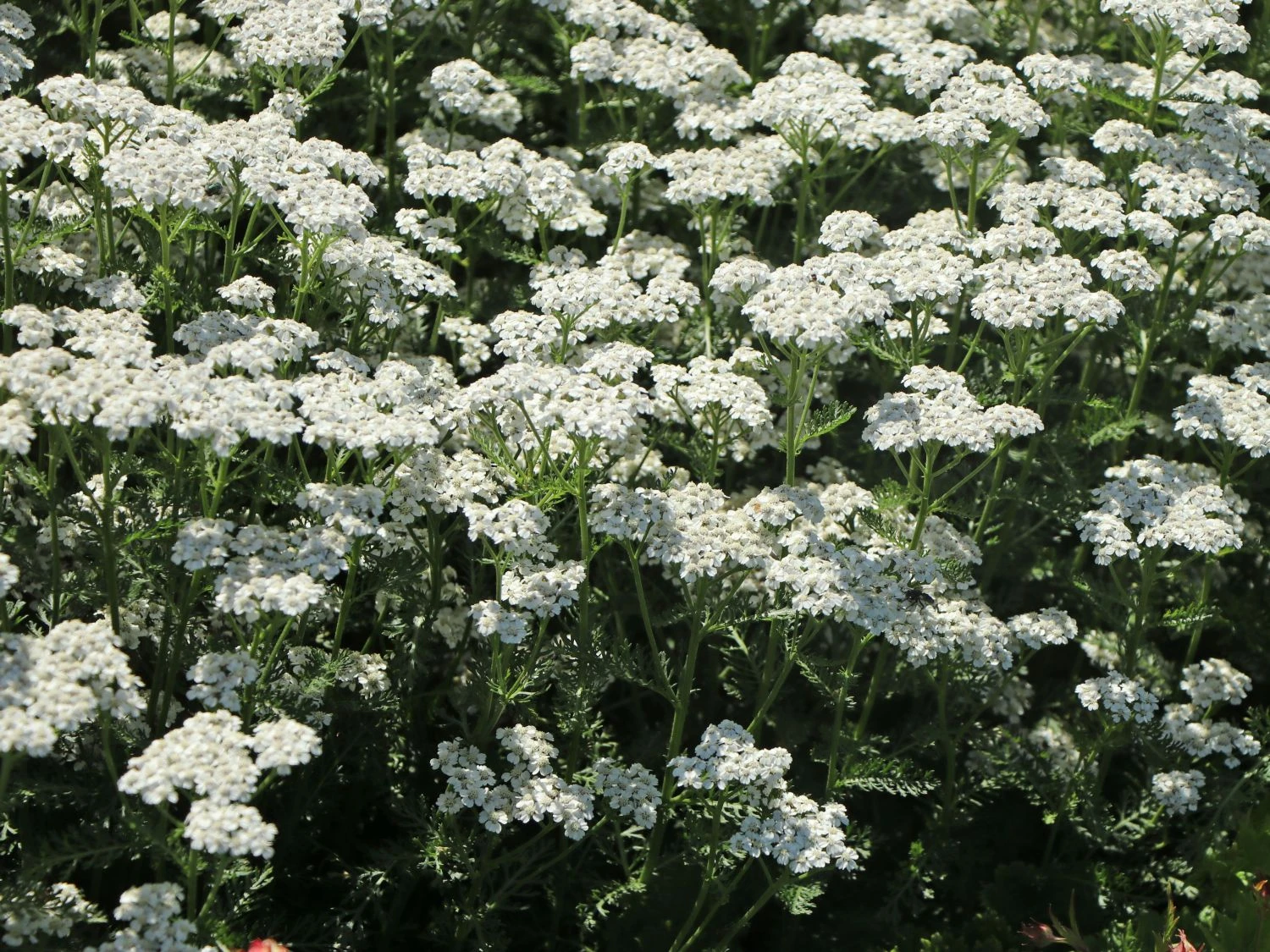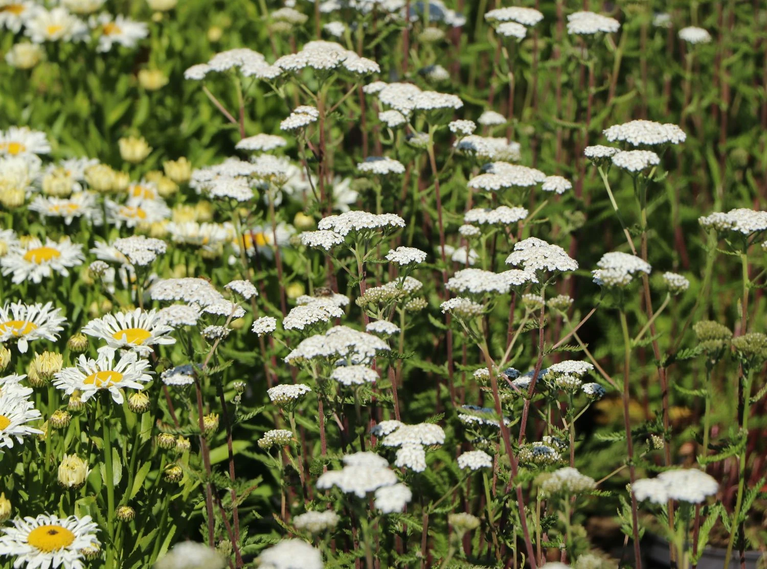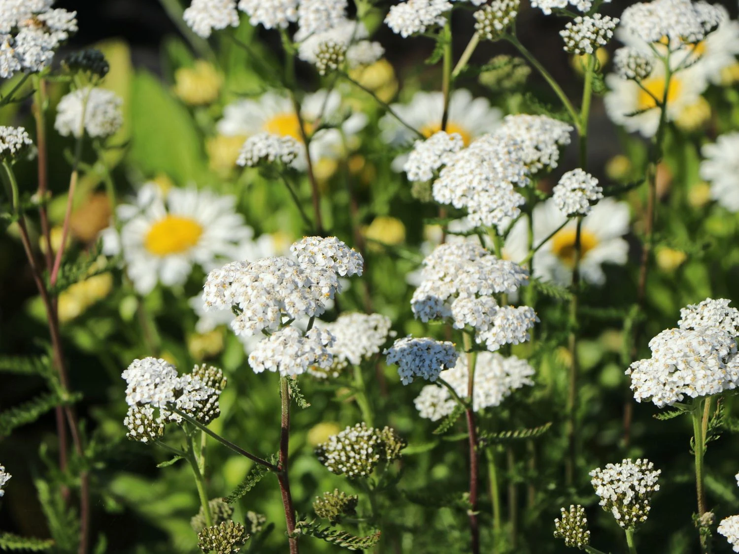 Die Schafgarbe ‚New Vintage White‘ ist mit ihren weißen Blütendolden in jedem Bereich ein leuchtender Akzent. Die reinweißen Blüten stehen in einem herrlichen Kontrast zum grünen Blattwerk. Die zarten Blätter von (bot.) Achillea millefolium ‚New Vintage White‘ sind äußerst filigran und ähneln in ihrer Optik denen des Farns. In der schönsten Sommerzeit, der Zeitraum von Juli bis Oktober, erscheinen die schneeweißen Doldenblüten und bieten einer Vielzahl von Insekten reichlich Nahrung. Bienen, Hummeln und Schmetterlinge fühlen sich vom Duft des süßen Nektars angezogen. Gerne besuchen sie regelmäßig die Blüten der Schafgarbe ‚New Vintage White‘.