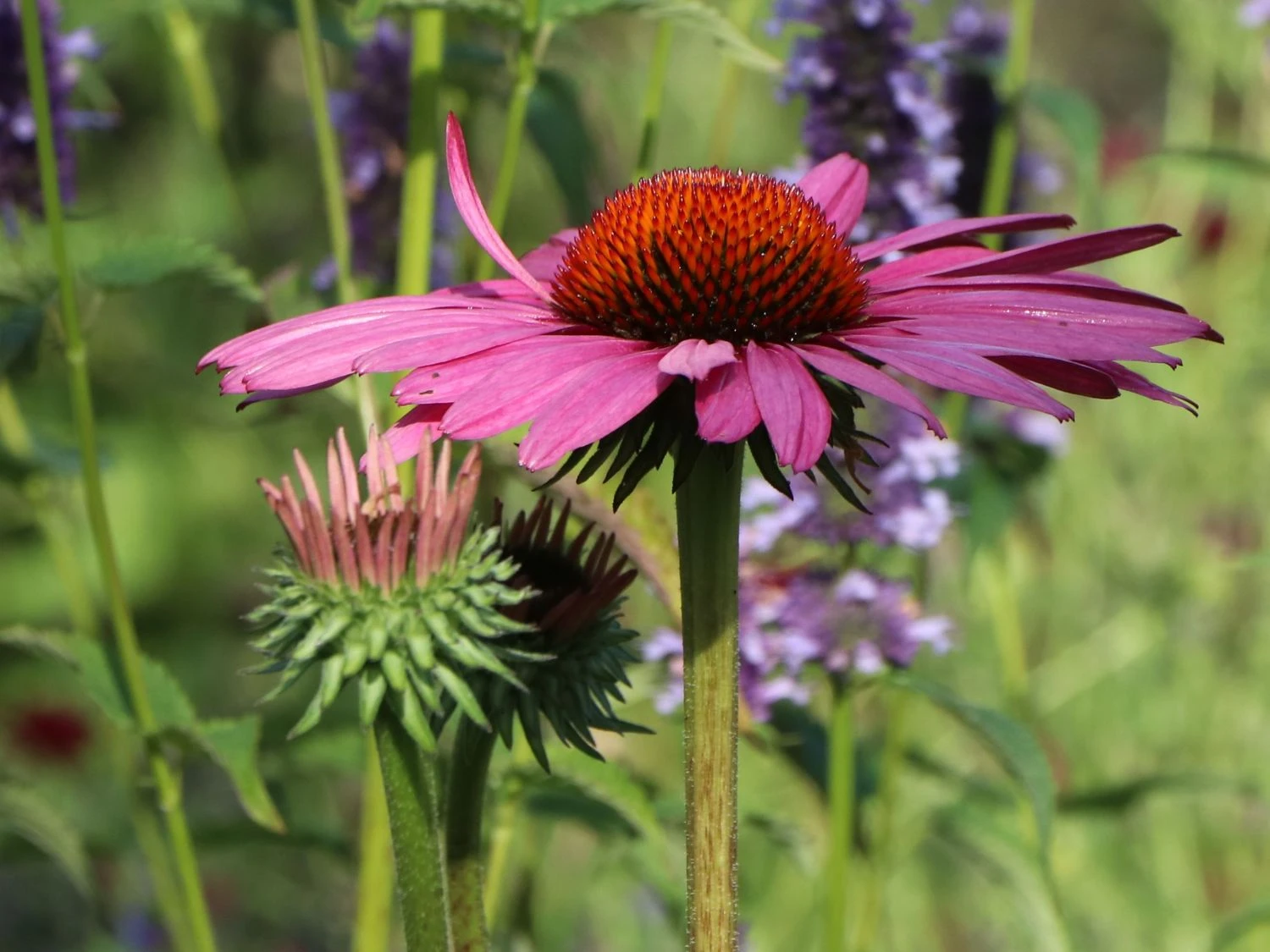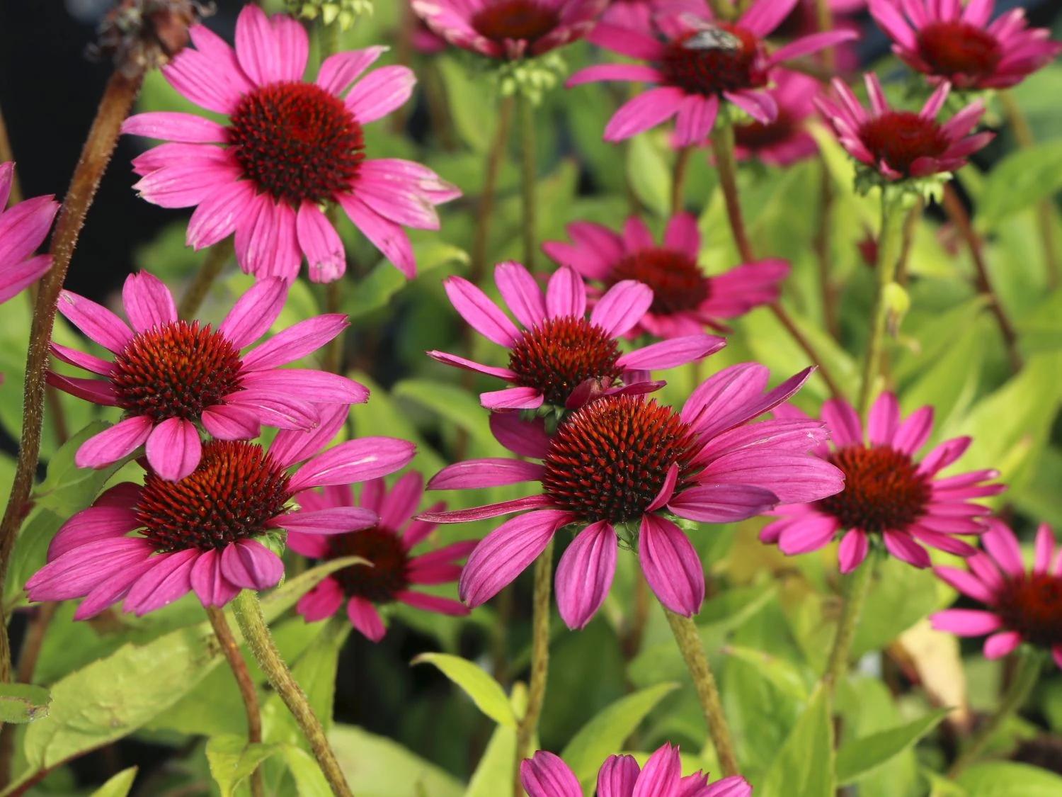 Der Scheinsonnenhut ‚Little Magnus‘ ® ist eine straff aufrecht wachsende Staude. Von Juli bis in den September schmückt sich dieser Scheinsonnenhut mit strahlenförmigen Blüten. Sie sind tiefrosa bis purpurrosa und von auffälliger Strahlkraft. Der botanische Name der unkomplizierten Blütenpflanze lautet Echinacea purpurea ‚Little Magnus’®. Es handelt sich um eine Neuzüchtung, die aufgrund ihrer Blütenpracht unzählige Liebhaber fand. Mit ihrem kompakten Wuchs und einer Höhe von maximal 50 Zentimetern ist diese Sorte kleiner als viele Echinacea-purpurea-Sorten. Die horstbildende Pflanze passt aufgrund ihrer Größe in jedes Staudenbeet. Die Echinacea purpurea gehört zur Familie der Korbblütler (Asteraceae). Sie stammt ursprünglich aus Nordamerika. Dort spielt der Scheinsonnenhut bei der indigenen Bevölkerung als Heilpflanze eine große Rolle.
