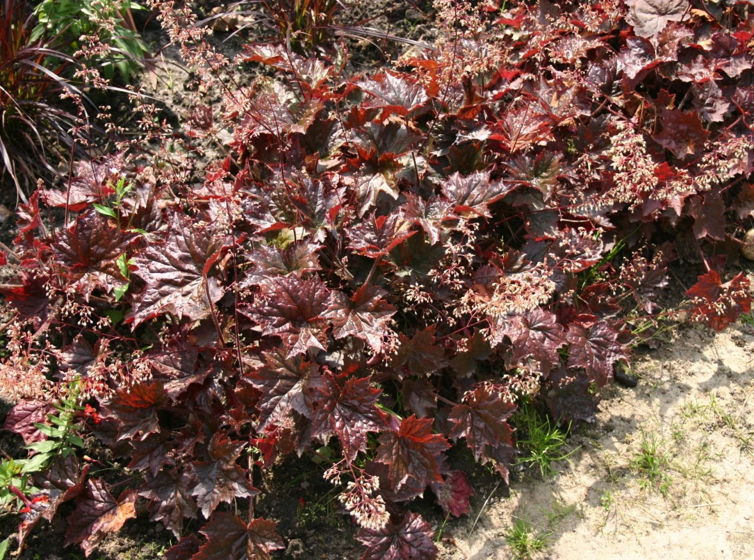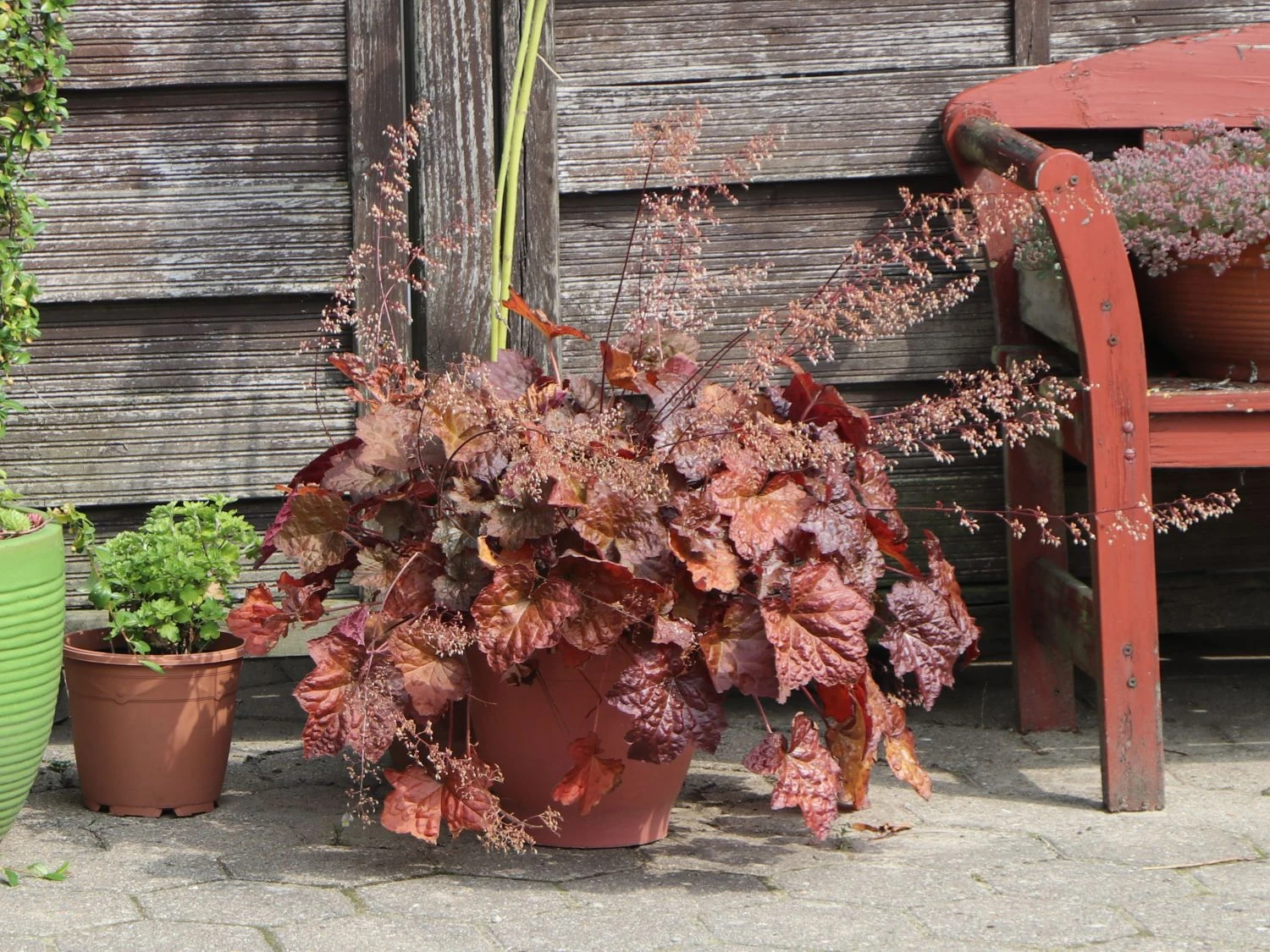 Sie bereichert mit ihrem dekorativen Aussehen viele Gartenbereiche. Das Silberglöckchen ‚Cappuccino‘, oftmals fälschlich als Purpurglöckchen ‚Cappuccino‘ bezeichnet, gehört zur Familie der Steinbrechgewächse (Saxifragaceae). Im Hochsommer bildet (bot.) Heuchera micrantha ‚Cappuccino‘ eine Vielzahl an filigranen, rispenartigen Blüten. Die Staudenpflanze zeigt eine kissenartige und horstbildende Wuchsform sowie eine Wuchshöhe von 15 bis 60 Zentimetern. Das mehrjährige, wintergrüne Silberglöckchen ist vornehmlich für halbschattige Standorte geeignet. Vor allem Gehölzränder, Freiflächen, Steinanlagen oder Rabatte sind ihre bevorzugten Bereiche.