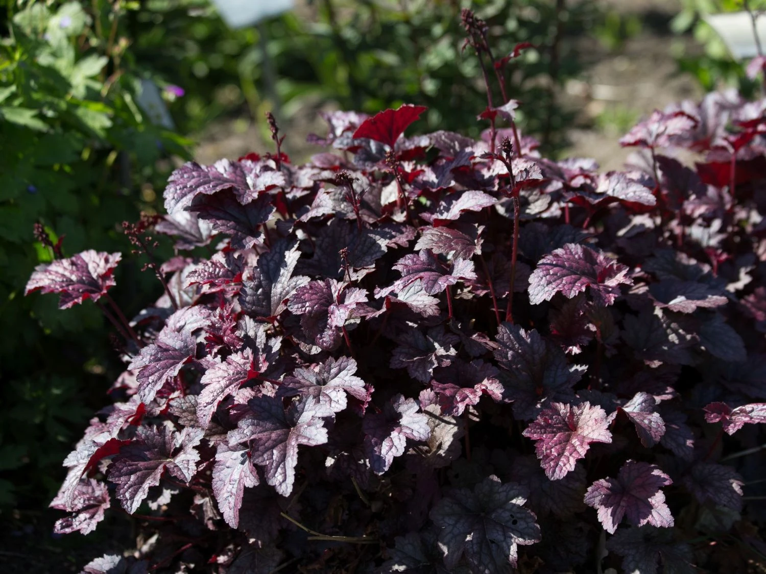 Die Blütenform ist glockenförmig und der Blütenstand ist rispenartig. Das Laub des Silberglöckchens ‚Plum Pudding‘ ® ist rundlich und der Blattrand gelappt. Sie gehört zu der botanischen Gattung: Heuchera. Das Silberglöckchen ist meist an Gehölzrändern oder auf Freiflächen zum Beispiel in Parks, zu finden. Es hat eine Wuchshöhe von 15 bis 30 Zentimetern, in der Blütezeit wird sie sogar bis zu 50 Zentimeter und die Wuchsbreite beträgt 30 bis 40 Zentimeter. Sie wächst kissenartig, halbkugelig sowie horstig. Die Pflanze fühlt sich bei einem halbschattigen oder einen absonnigen Standort sehr wohl, nur in vollem Schatten vergrünen die Blätter des Silberglöckchens ‚Plum Pudding‘ ®. Man kann sie auf einem durchlässigen bis gut durchlässigen Boden, welcher eventuell mit Sand gemischt ist, pflanzen, denn dort fühlt sie sich rundum wohl. Die Pflanze ist winterhart und schützt sich vor eisigen Temperaturen besonders gut gepflanzt in Gruppen. Es ist möglich, acht bis zehn Pflanzen auf einem einzigen Quadratmeter unterzubringen. Die Stauden sollten jedoch in einem Abstand von circa 35 Zentimeter gepflanzt werden. Das Silberglöckchen ist eine wunderschöne und vor allem auffällig farbenfrohe Pflanze, welche neben farblichen Blättern, dem Besitzer auch hübsche weißlich bis rosafarbene Blüten schenkt.