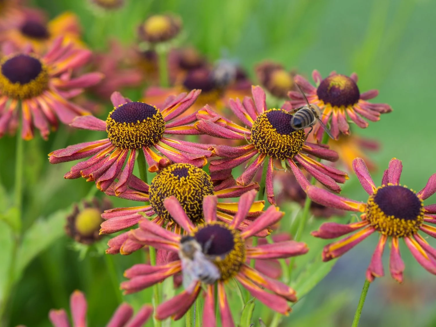 Regelmäßig gießen und verblühte Blütenköpfchen entfernen sollte dazu beitragen, dass die Staude gesund aussieht und nicht nur die Blicke der Menschen auf sich zieht. Auch Bienen, Schmetterlinge und andere Nektarsucher werden auf die Sonnenbraut ‚Loysder Wieck‘ aufmerksam. Sie sind für viele Insekten entweder eine wichtige Nahrungsquelle oder ihr Lebensraum. Um die Sonnenbraut ‚Loysder Wieck‘ zu vermehren, kann die schöne Pflanze geteilt werden. Diese Sonnenbraut, mit dem botanischen Namen Helenium x cult. ‚Loysder Wieck‘ ist eine Pflanzengattung, die sich sehr schön in Staudengärten kultivieren lässt. Der Gartenfreund wird bestimmt viel Freude an diesen schönen Pflanzen haben.