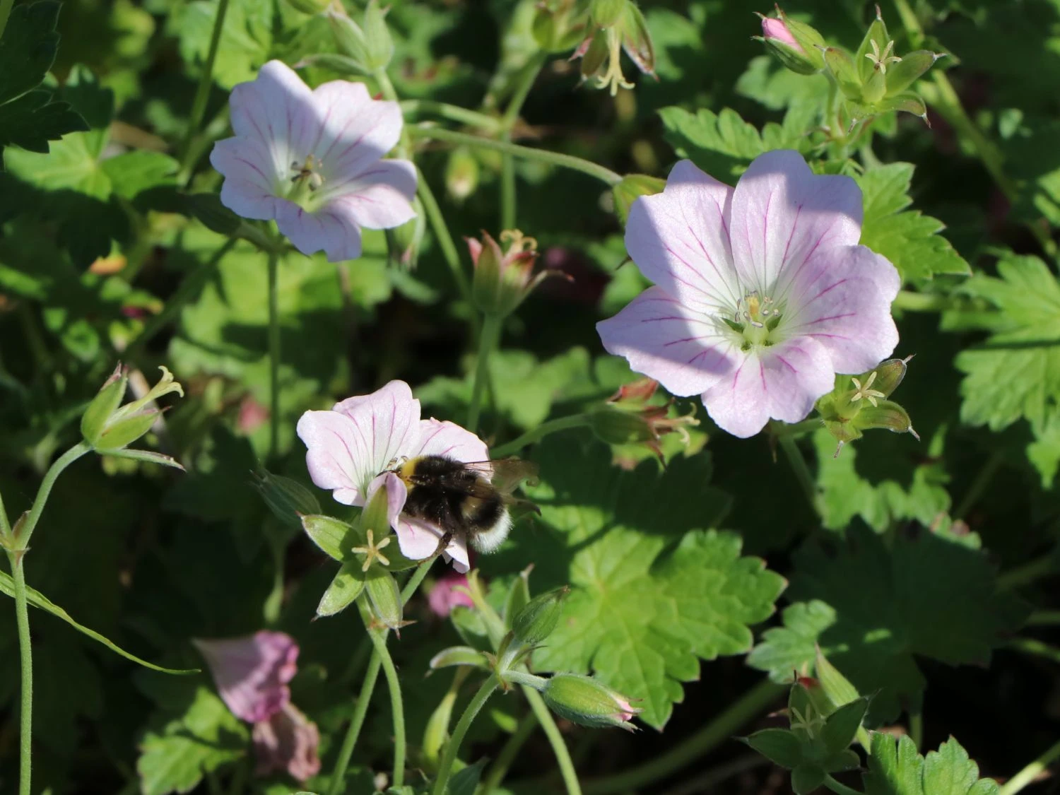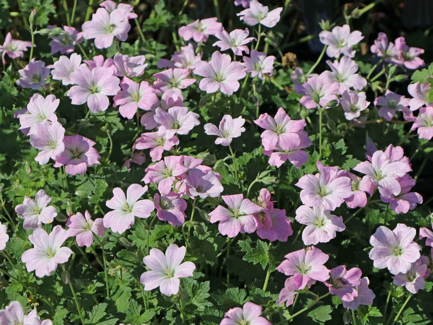 Die kissenartig wachsende Pflanze wird zwischen 35 und 40 Zentimeter hoch. Die Blütenstaude schmückt Beete, Rabatten, Gehölzränder und Pflanzkübel. Dieses Geranium ist eine Augenweide. Die fünfblättrigen Blüten des Storchschnabels changieren zwischen einem zarten Weißrosé und lichtem Lila. Die Blüte ist flach schalenförmig und extrem dekorativ. Eine ist schöner als die andere! Das Blattkleid der attraktiven Staude ist dunkelgrün und matt, weich. Das Blatt ist rundlich geformt und in mehreren Segmenten gelappt. Die Geranium-Hybride wächst kissenartig und bodendeckend. Besonders schön kommen ihre teppichbildende Wirkung und die Leuchtkraft der Blüten durch eine Gruppenpflanzung zum Tragen. Der Gärtner kann diese hübsche Pflanze an vielen Stellen einsetzen. Sie schmückt Beete, Rabatten oder Steingärten, sie macht vor Mauern, Hecken oder als Unterpflanzung von Gehölzen eine perfekte Figur. Der Gartenfreund setzt maximal zehn Pflanzen pro Quadratmeter. Dabei ist ein Pflanzabstand von rund 35 Zentimetern bis zur nächsten Pflanze beachten, da sich der Storchschnabel gerne ausbreitet.
