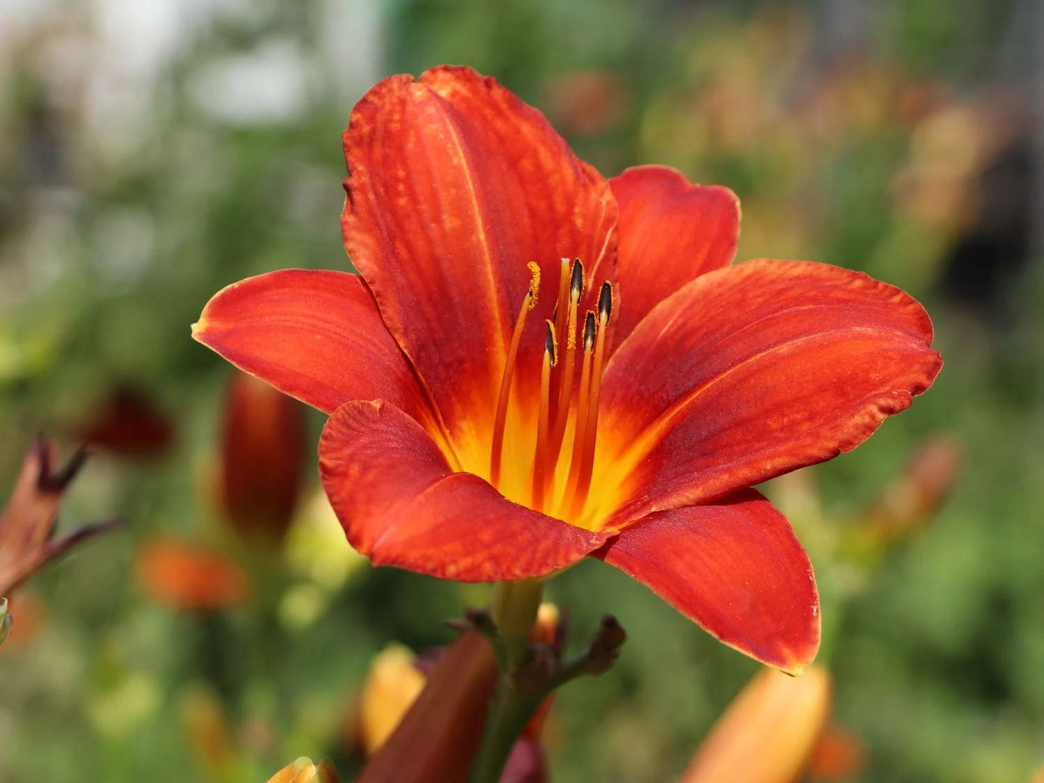 Noch dazu bezaubert die Hemerocallis x cult.’Chicago Apache‘, wie sie botanisch heißt, auch auf Freiflächen und an Gehölzrändern und kommt auch hier wunderschön zur Geltung. Wichtig für alle der genannten Standorte ist allerdings, dass die Pflanze an sonnigen bis halbschattigen beziehungsweise absonnigen Plätzen gepflanzt wird, denn diese Plätze mag diese schöne Pflanze am Liebsten. Des Weiteren mag diese Gartenpflanze insbesondere einen frischen und durchlässigen Boden, der einen ausgeglichenen Nährstoffgehalt besitzt und nur einen mäßigen Kalkanteil aufweist. Denn in einem solchen Boden gedeiht die Pflanze sehr gut und kann so ihre hübsche Pracht voll und ganz ausbilden. Darüber hinaus ist die Taglilie ‚Chicago Apache‘ sehr anspruchslos und extrem robust, was sich vor allem bei der enormen Frosthärte zeigt.