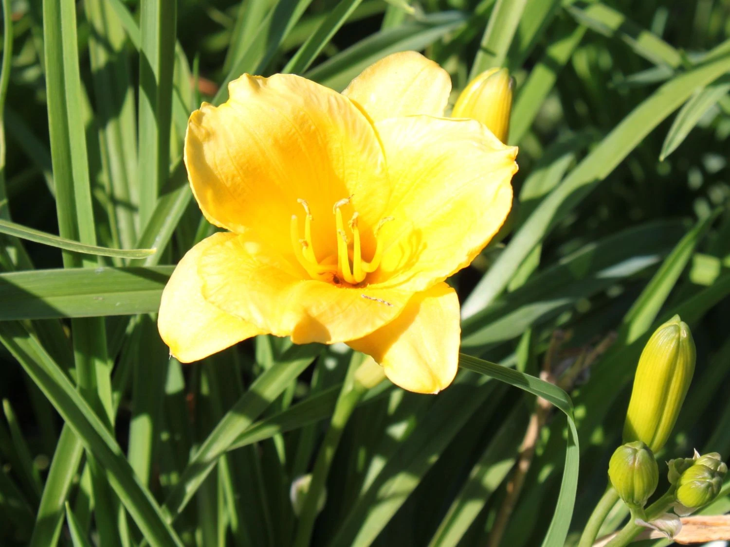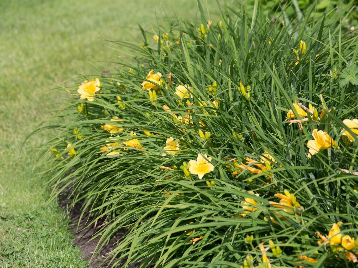 Die Taglilie ‚Mini Stella‘ überzeugt mit ihren majestätischen Blüten und ihrem angenehmen Duft. Die trichterförmigen Blüten erstrahlen in einem satten Goldgelb bis tiefen Gelb. Die Blütezeit von (bot.) Hemerocallis x cultorum ‚Mini Stella‘ beginnt Anfang Juni und endet im August. Während dieser Zeit wirkt die Pflanze mit ihrem Duft wie ein Magnet für Insekten. Die Blätter der Taglilie ‚Mini Stella‘ erscheinen in einem satten Grün und fallen in besonderer Weise durch ihre lineale, schmale und zugespitzte Form auf. Aufgrund der pflegeleichten Art und ihrer Anspruchslosigkeit ist diese Staude in vielen Gärten ein gern gesehener Gast. Diese Taglilie wächst kompakt und erreicht eine Wuchshöhe von circa 30 Zentimeter und ragt circa 30 bis 50 cm in die Breite.
