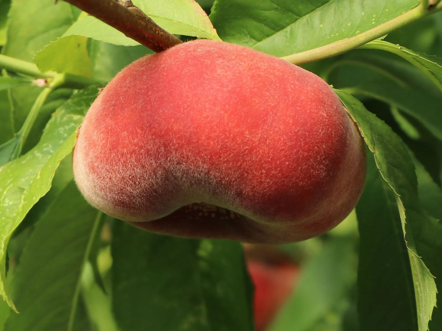 Der Tellerpfirsich ‚Sugar Baby‘ ist ein exotisch anmutender Fruchttraum im eigenen Garten! Dabei ist die Pflanze sehr robust, anspruchslos und auch in unseren Breiten winterhart. Da diese Sorte selbstfruchtend ist, steht der Ernte der köstlichen Früchte von (bot.) Prunus persica ‚Sugar Baby‘ nichts im Weg. Die Pfirsiche dieses Obstbaums sind flach und entwickeln sich charakteristisch tellerförmig. Ihr Aroma ist einzigartig: Süß, intensiv und an Wildpfirsich erinnernd. Zum Frischverzehr sind die teller-runden und saftigen Steinfrüchte ideal. Ein köstlicher Snack für Zwischendurch! Kein Wunder, dass der Tellerpfirsich ‚Sugar Baby‘ Everybody’s Darling ist.