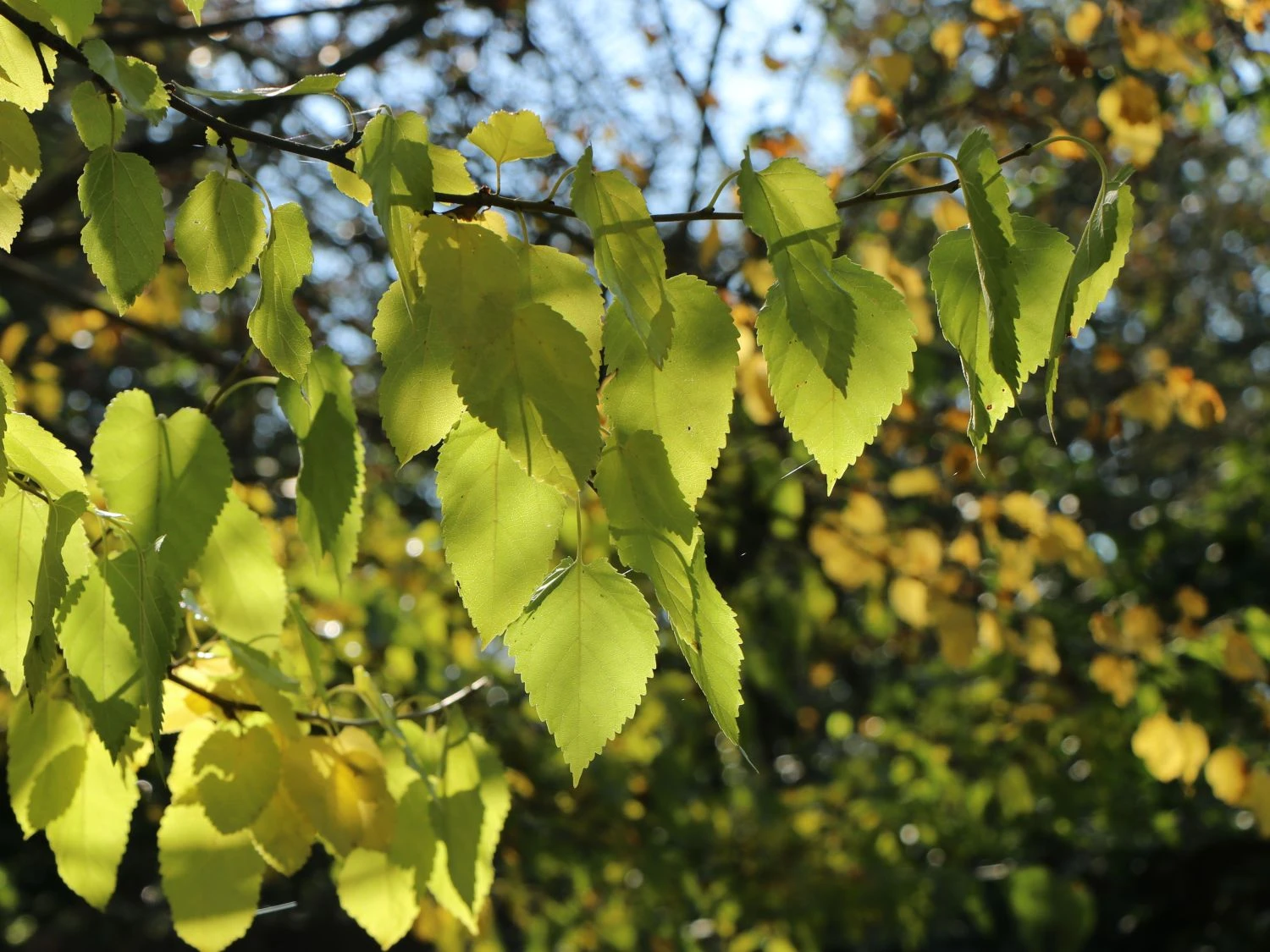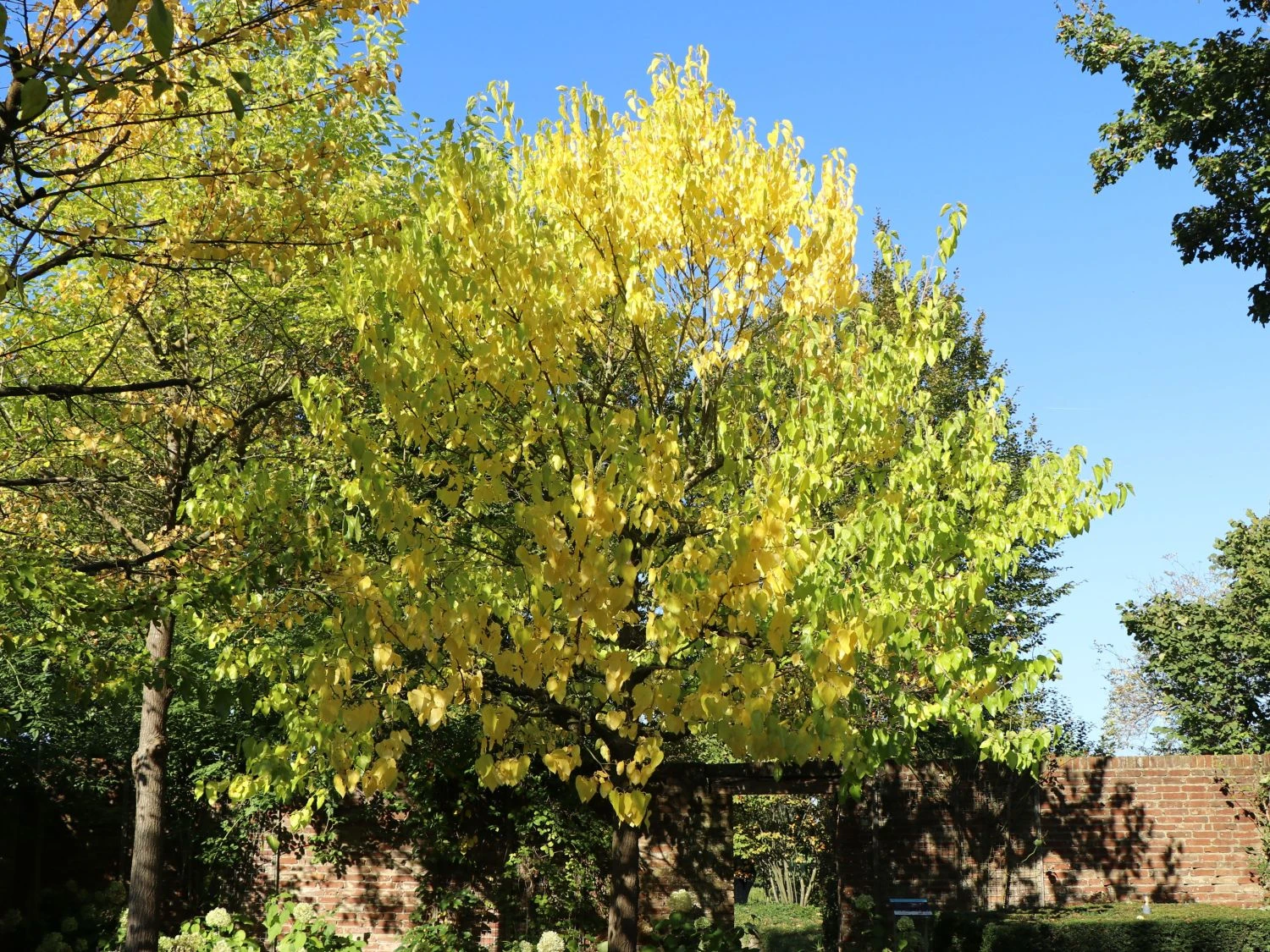 Die hellgrünen Blätter der Belaubung sind breit eiförmig geformt und dünn wie Papier. Der sommergrüne malerische Großstrauch wächst auf eine Höhe von 600 – 800 cm und eine Breite von bis zu 400 cm.