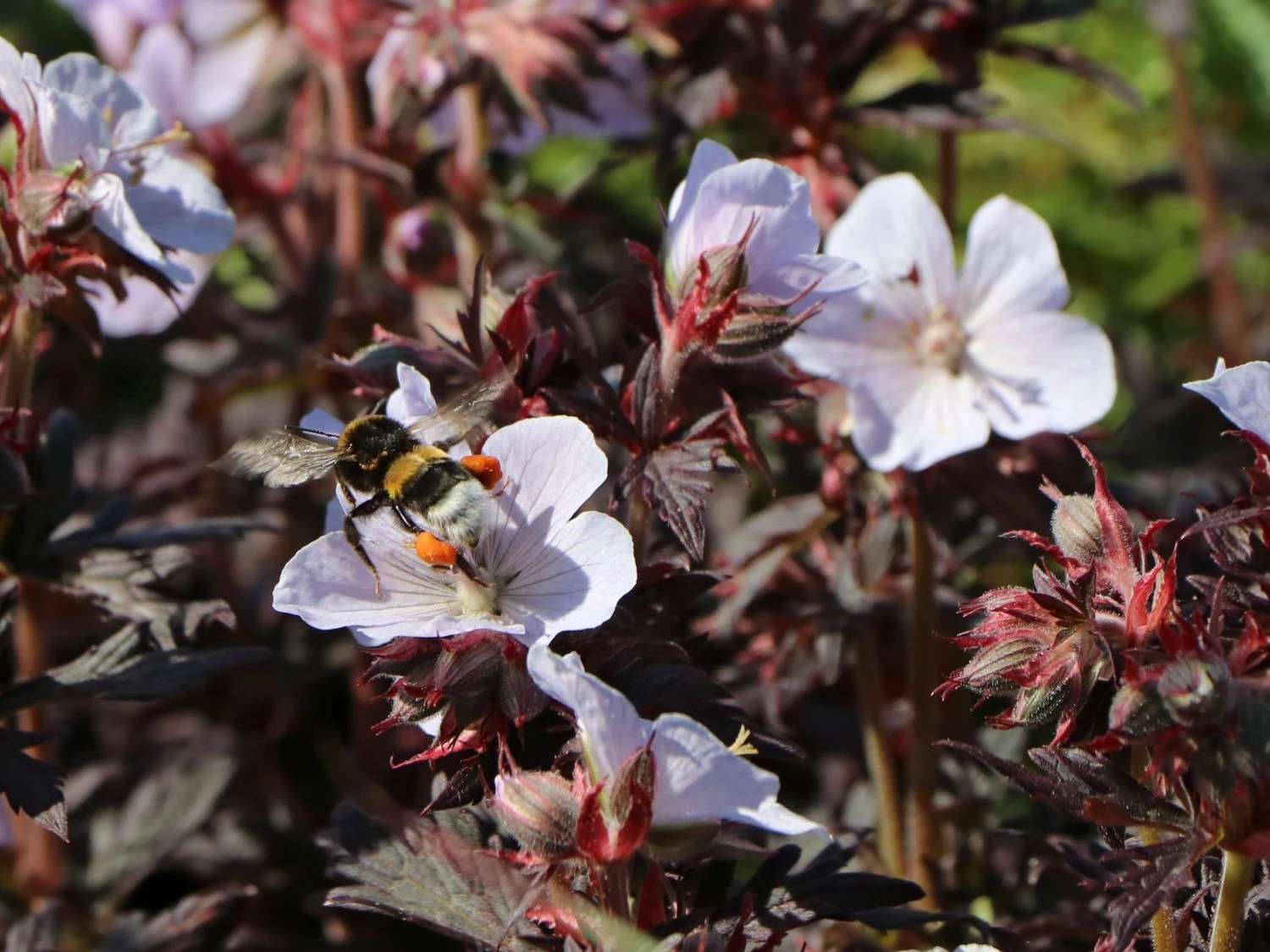 Der ideale Boden ist mäßig nährstoffreich, neutral, frisch und locker. Die Pflanze verträgt Trockenheit über kürzere Perioden und kommt mit der Feuchtigkeit bei normalem Niederschlag aus. Nur Staunässe gilt es zu vermeiden, denn diese schädigt die Wurzeln. Nährstoffe bekommt der Der Wiesen-Storchschnabel ‚Black’n White Army‘ im Frühjahr. Von einmaligem Düngen zehrt er bis zum Herbst. Ein regelmäßiger Schnitt ist für Geranium pratense ‚Black’n White Army‘ nicht erforderlich. Lediglich empfiehlt es sich, die welken Blüten abzuschneiden, um eine Selbstaussaat zu vermeiden. Nach dem Rückschnitt der verblühten Stängel, treibt der Wiesen-Storchschnabel ‚Black’n White Army‘ eine zweite Blüte aus. Für den Winter genügt eine einfache Vorsorge. Kräftig ausgeprägte Stauden trotzen der Kälte in den Wochen des Winters. Nur die jungen Pflanzen benötigen eine schützende Decke aus Laub oder Reisig. Diese ist im zeitigen Frühjahr zu entfernen. Mit einer herrlich weißen Blüte bedankt sich Wiesen-Storchschnabel ‚Black’n White Army‘ beim Gärtner für die Mühen.