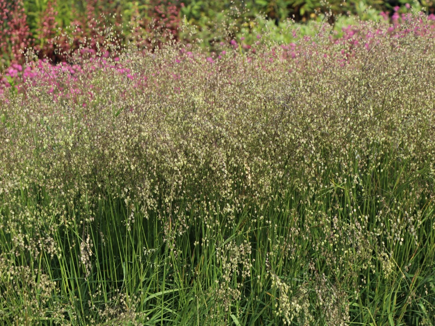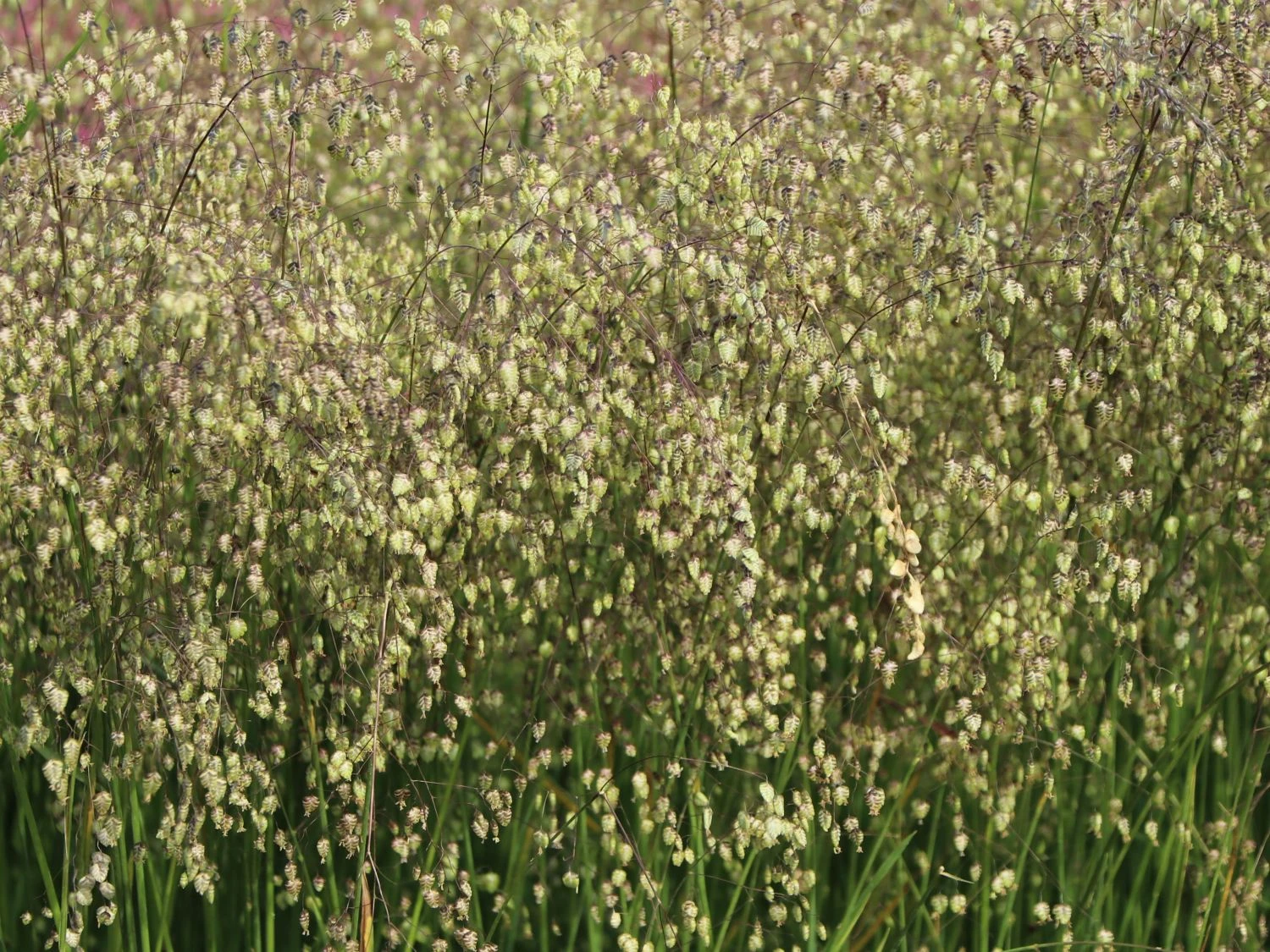 Mit feingliedrigen Blütenrispen schmückt sich das Zittergras von Mai bis weit in den August hinein. Die zierlichen Blüten gaben dem Gras seinen klingenden Namen. Schon beim kleinsten Windhauch zittern die zarten grünlich bis braunen Rispen anmutig. Sie sind die grazile Zierde dieser Pflanze. Tropfenförmig hängen sie an den langen Halmen herab. Ein zauberhaftes und leichtes Bild, das sich dem Betrachter bietet. Im Garten empfiehlt sich (bot.) Briza media für vielfältige Arrangements. Einzeln gepflanzt, in Gruppen, auf Freiflächen oder in Stein- und Heidegärten wirkt das Gras gleichermaßen elegant und zieht die Blicke auf sich.
